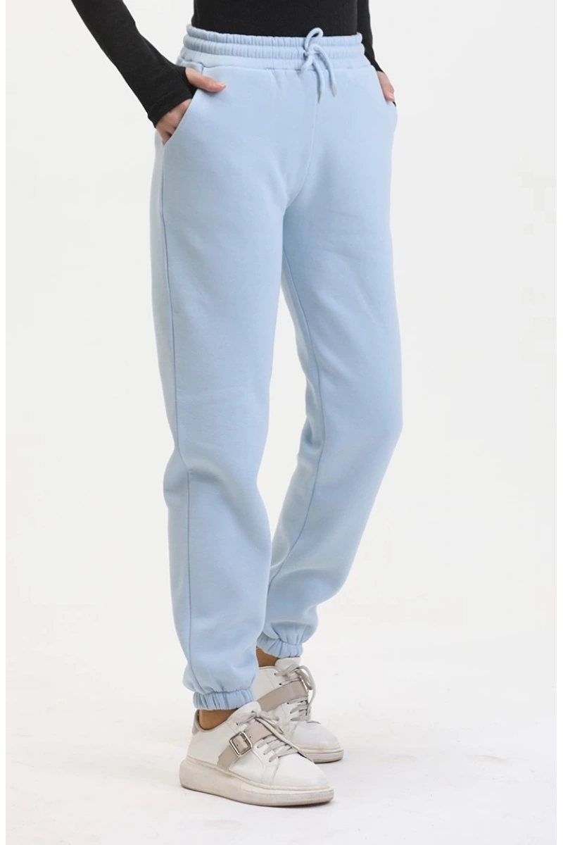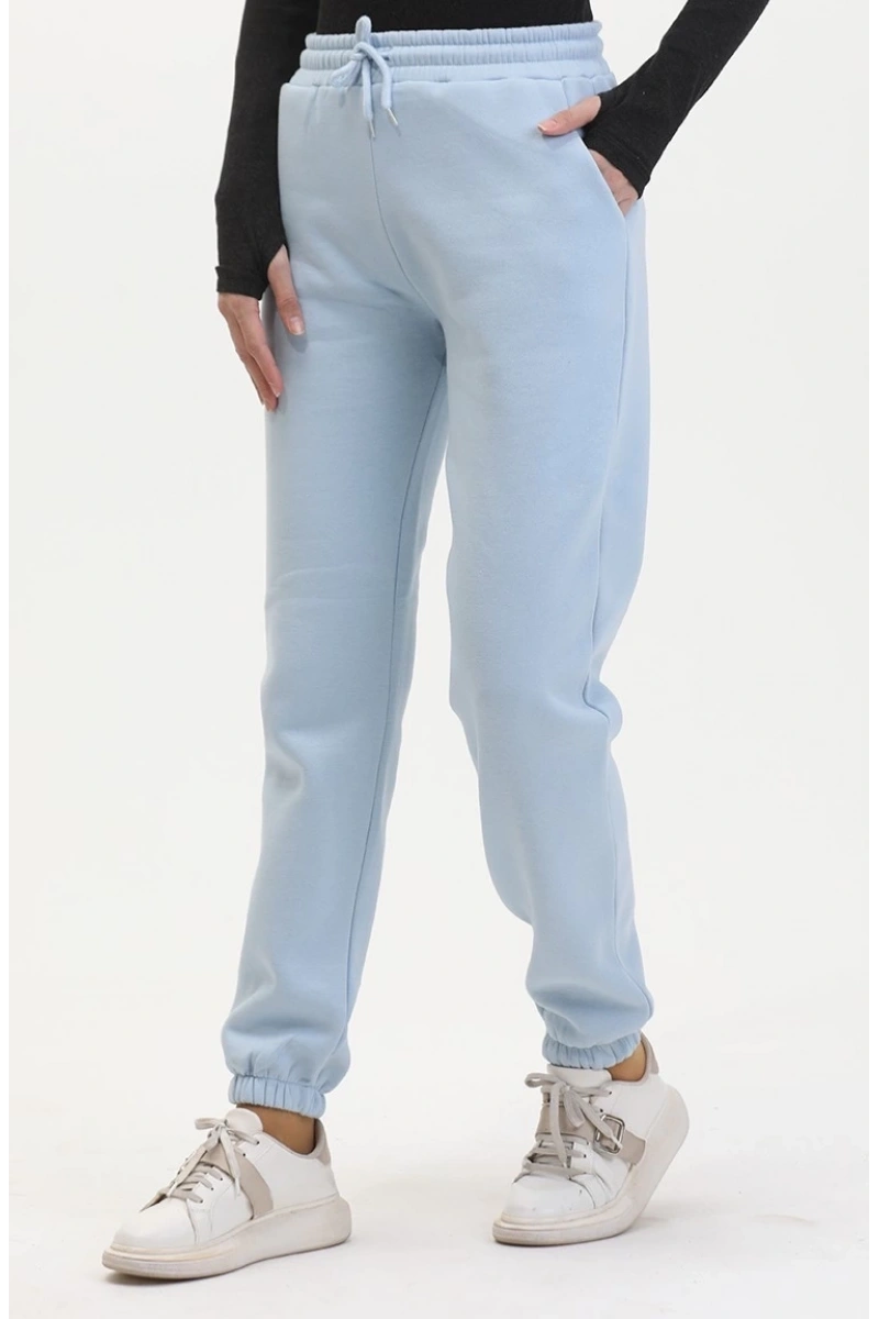 3 iplik şardonlu paça lastikli eşofman bebe mavi IS001, spor yaparken rahatlığınızdan ödün vermeyen kadın eşofmanıdır.