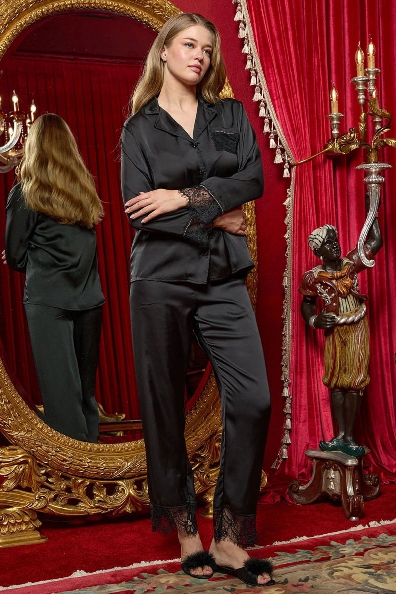 Aqua 26358 Saten Dantelli Gömlek Pijama Takımı