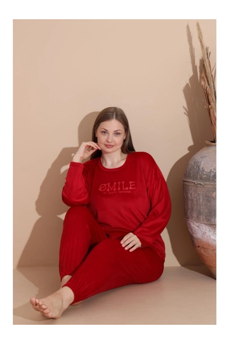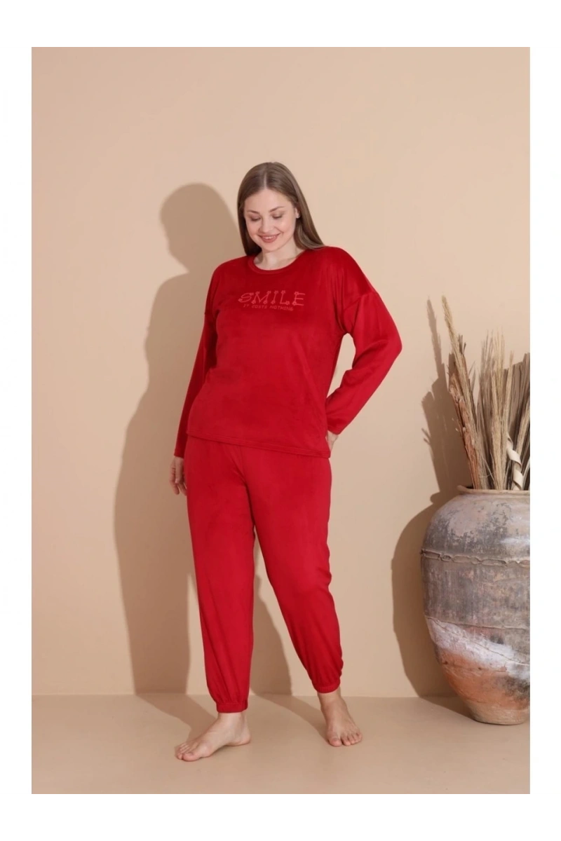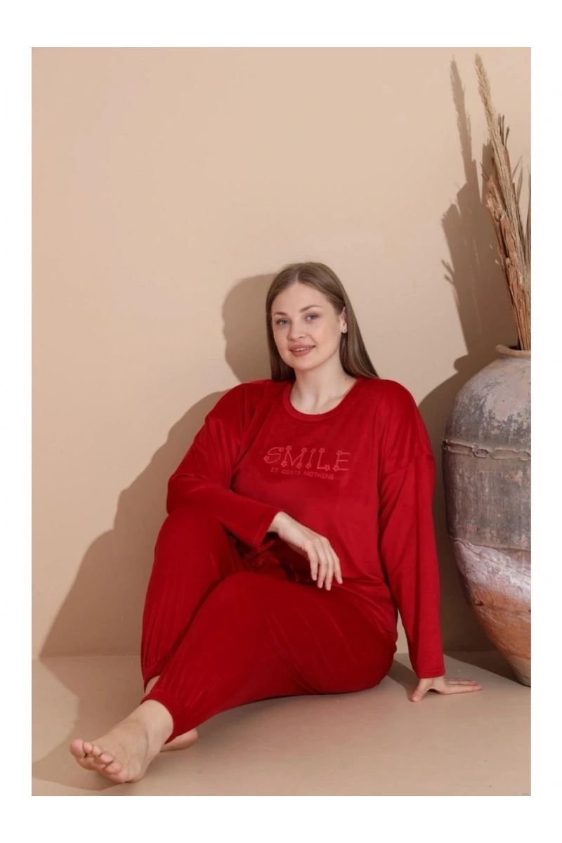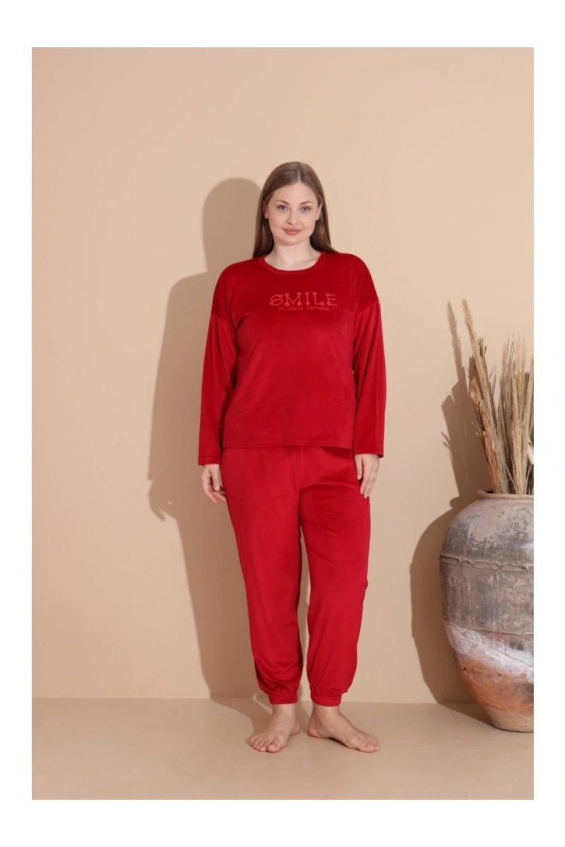 Boyraz 03130 Fransız Kadife Kumaş Uzun Kol Pijama Takımı