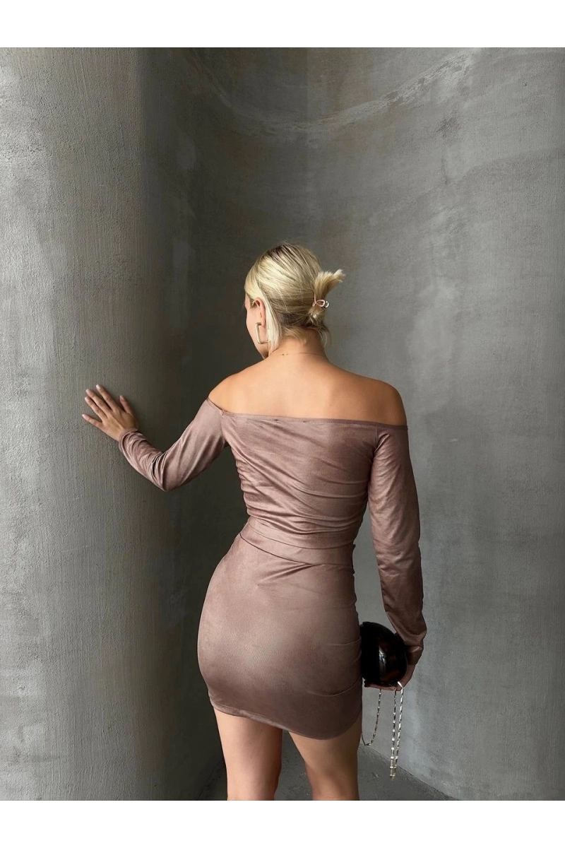 Yeni sezonun trendlerini yansıtan şıklığı Buğulu Etek Bluz Takım Kahve S24709 ile keşfedin.