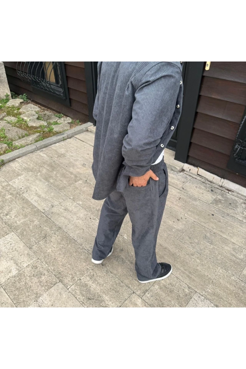 Erkek Fitilli Kadife Cepli Buggy Pantolon Oversize Rahat Kalıp - Füme