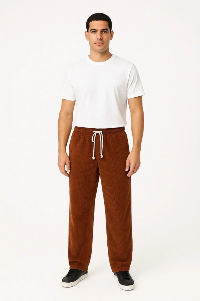 Erkek Fitilli Kadife Cepli Buggy Pantolon Oversize Rahat Kalıp - Kahverengi