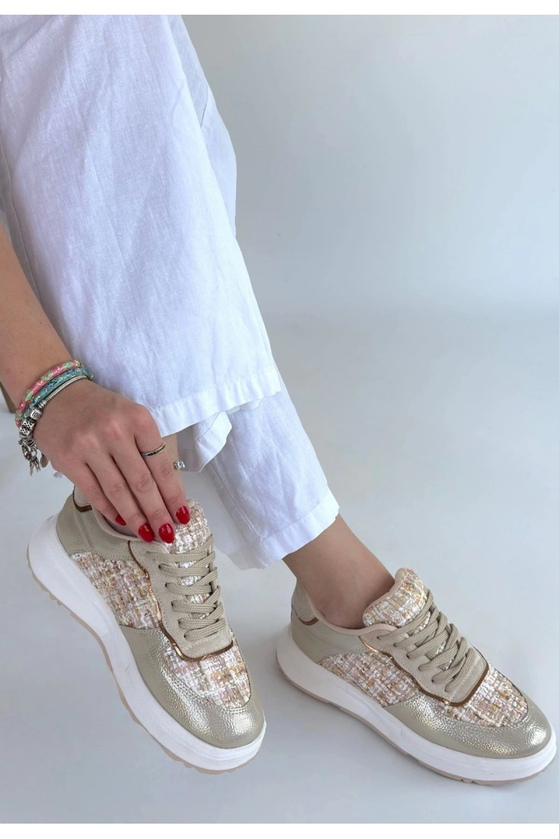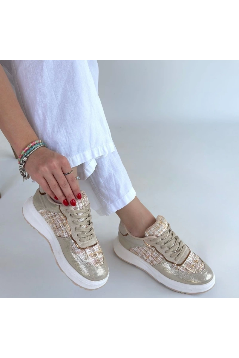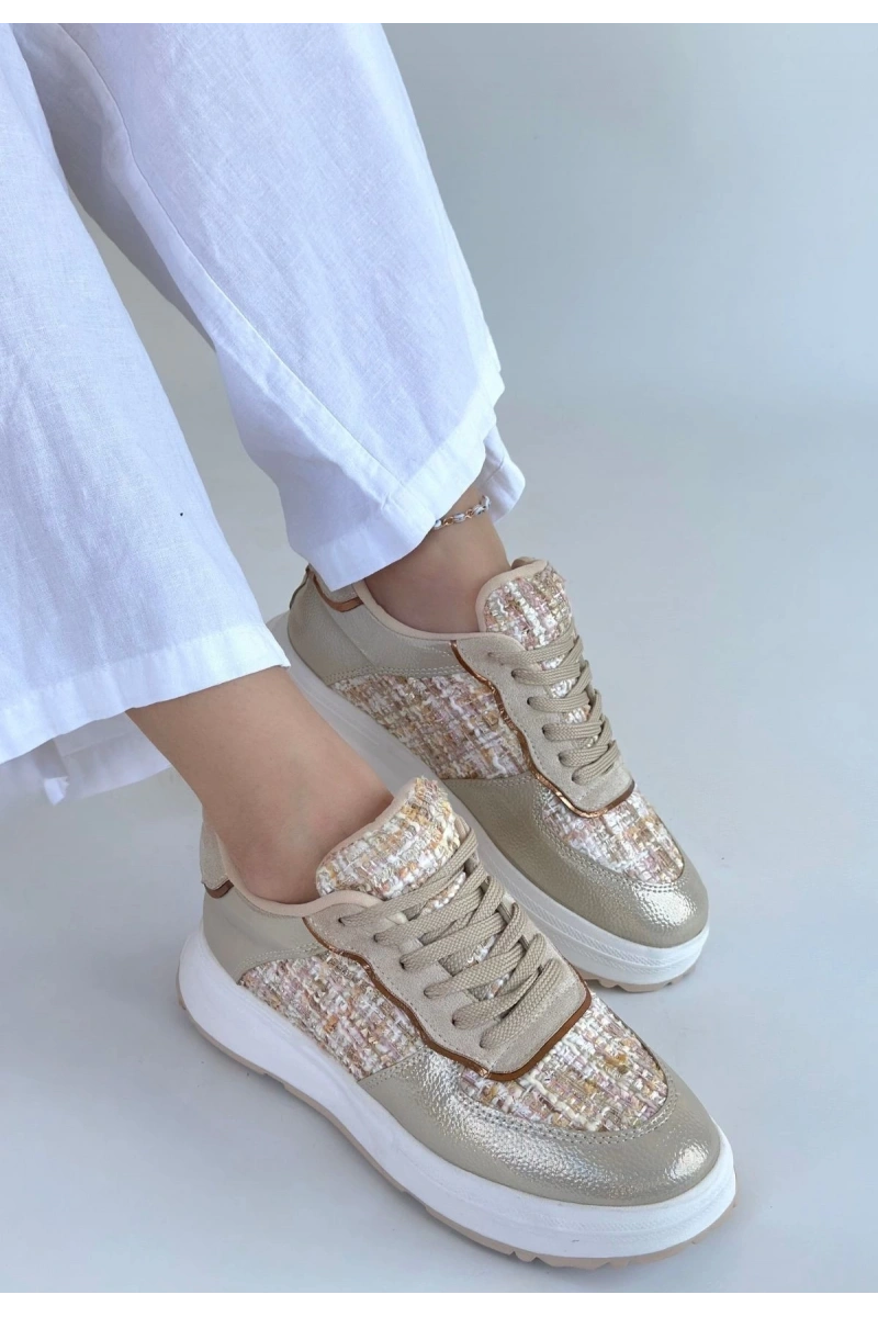 Hawer Bej Cilt Bağcıklı Spor Ayakkabı