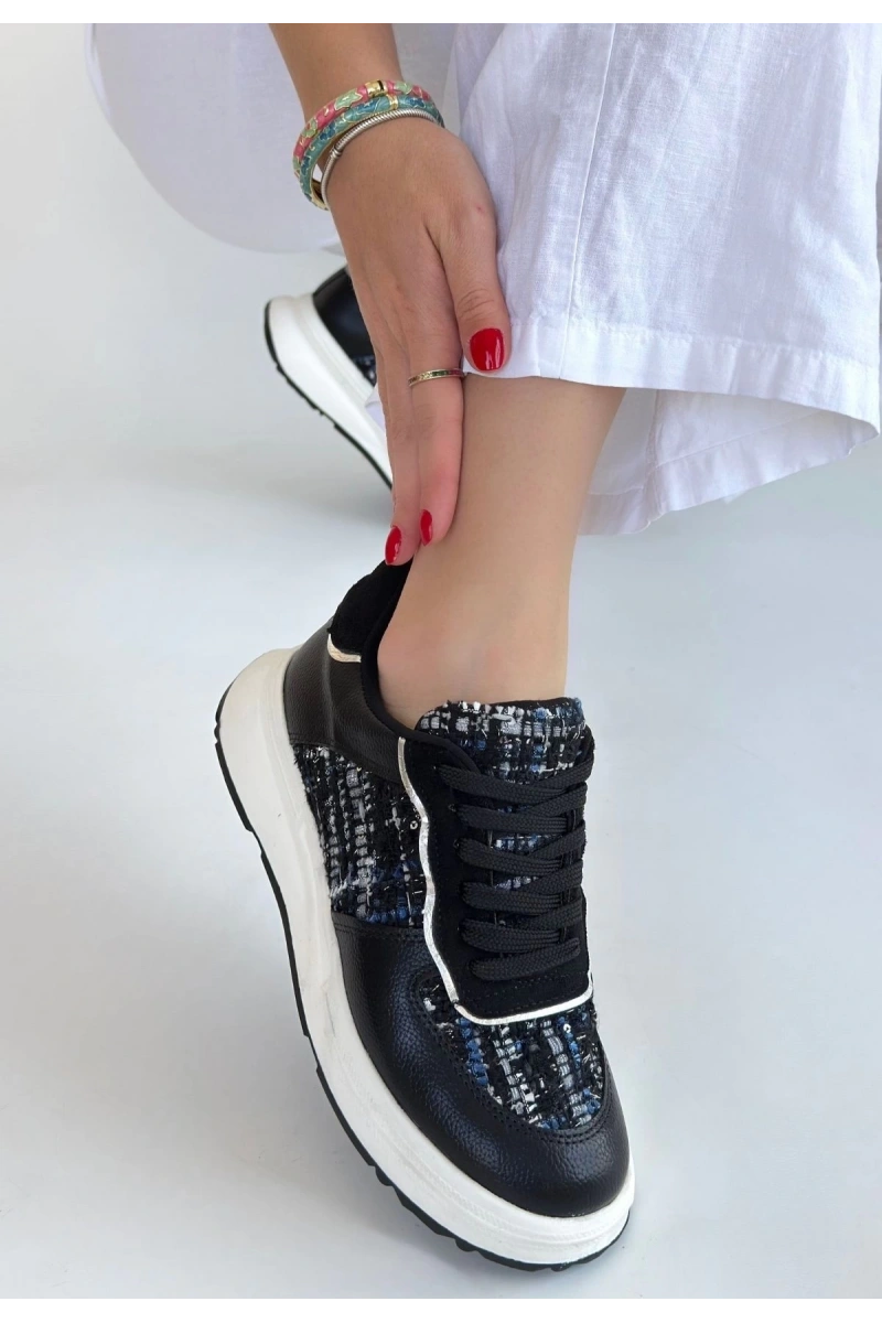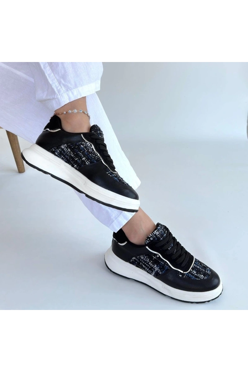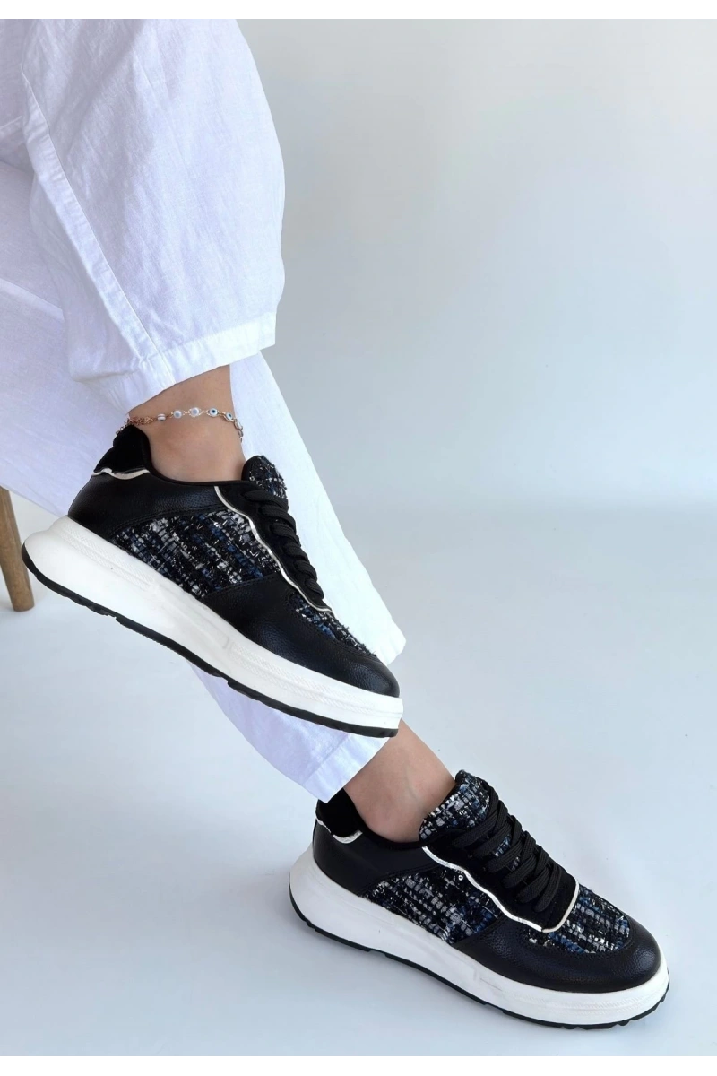 Hawer Siyah Cilt Bağcıklı Spor Ayakkabı