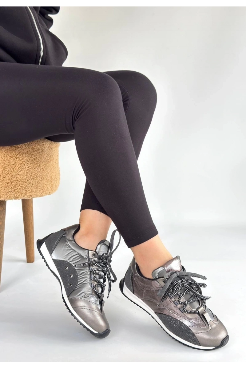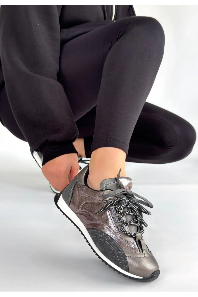Ranu Platin Cilt Paraşüt Detaylı Bağcıklı Spor Ayakkabı