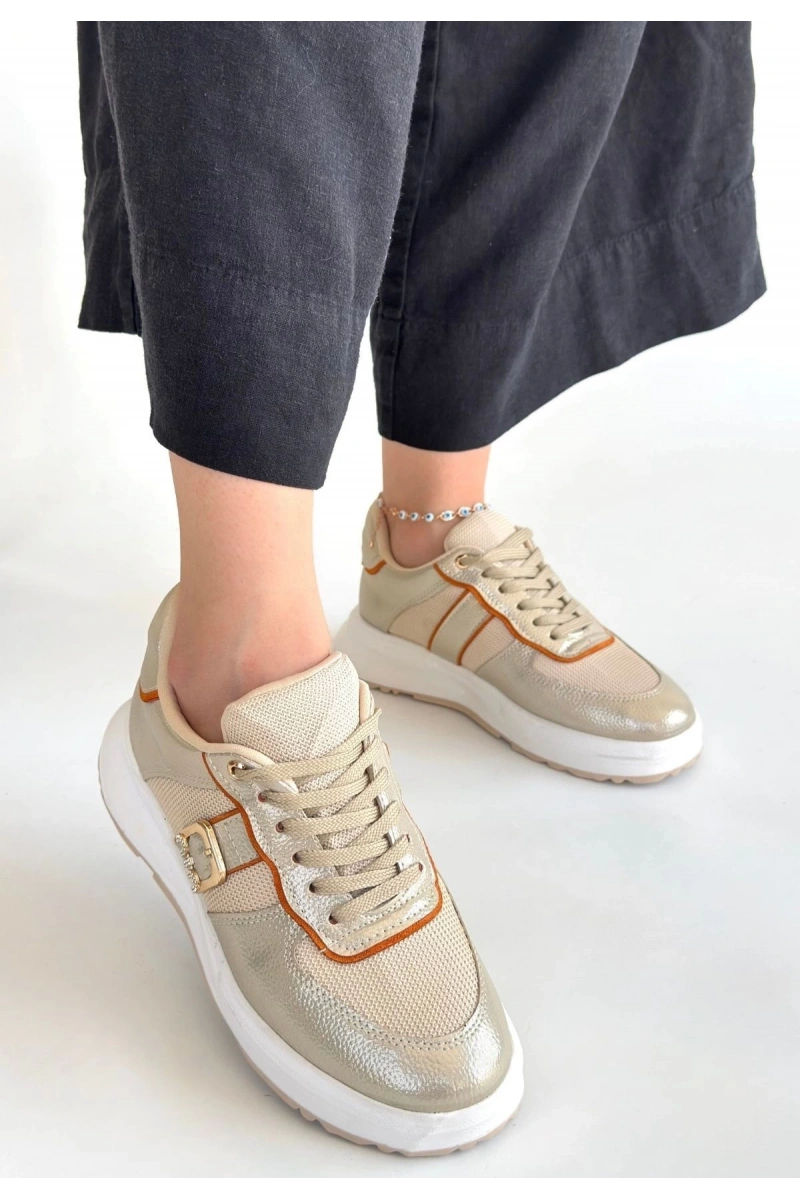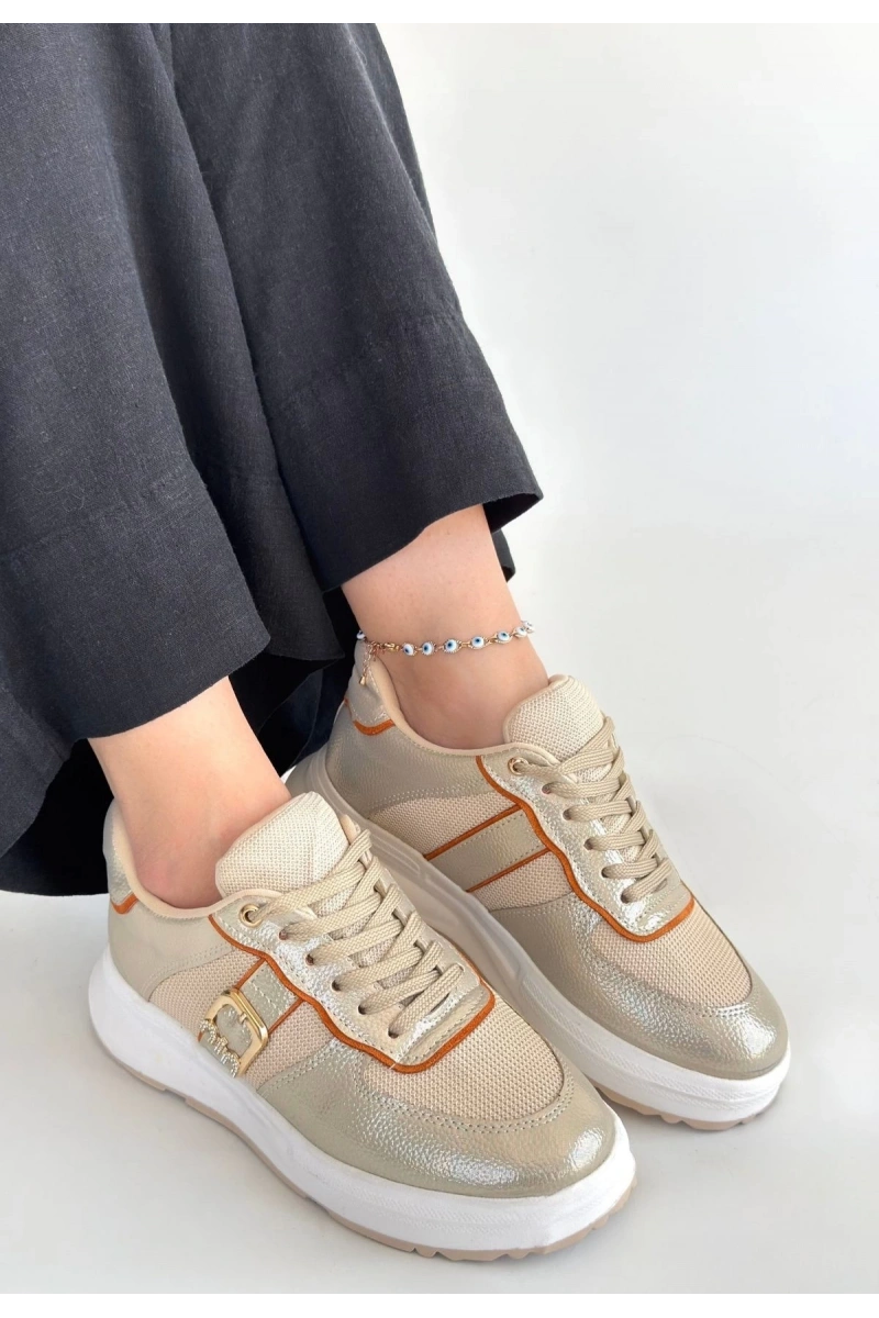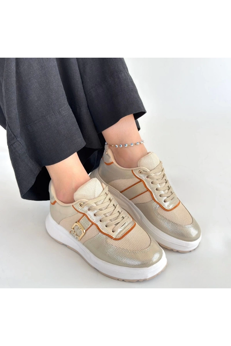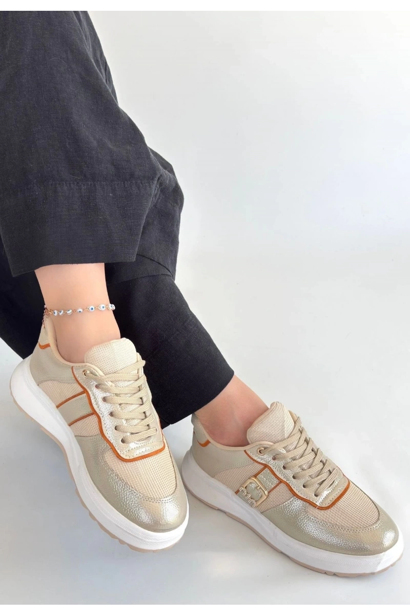 Tanwe Bej Cilt Bağcıklı Spor Ayakkabı