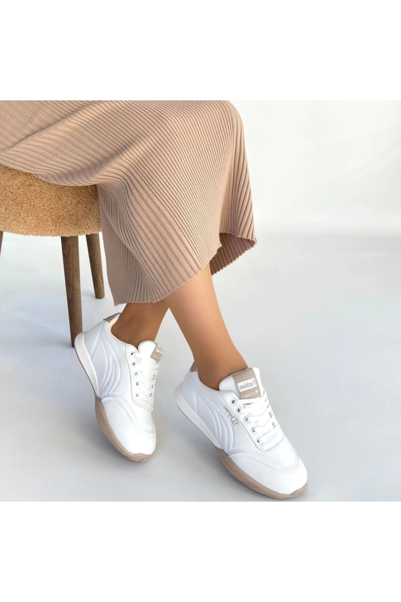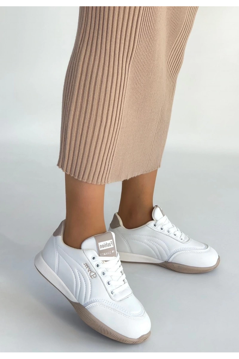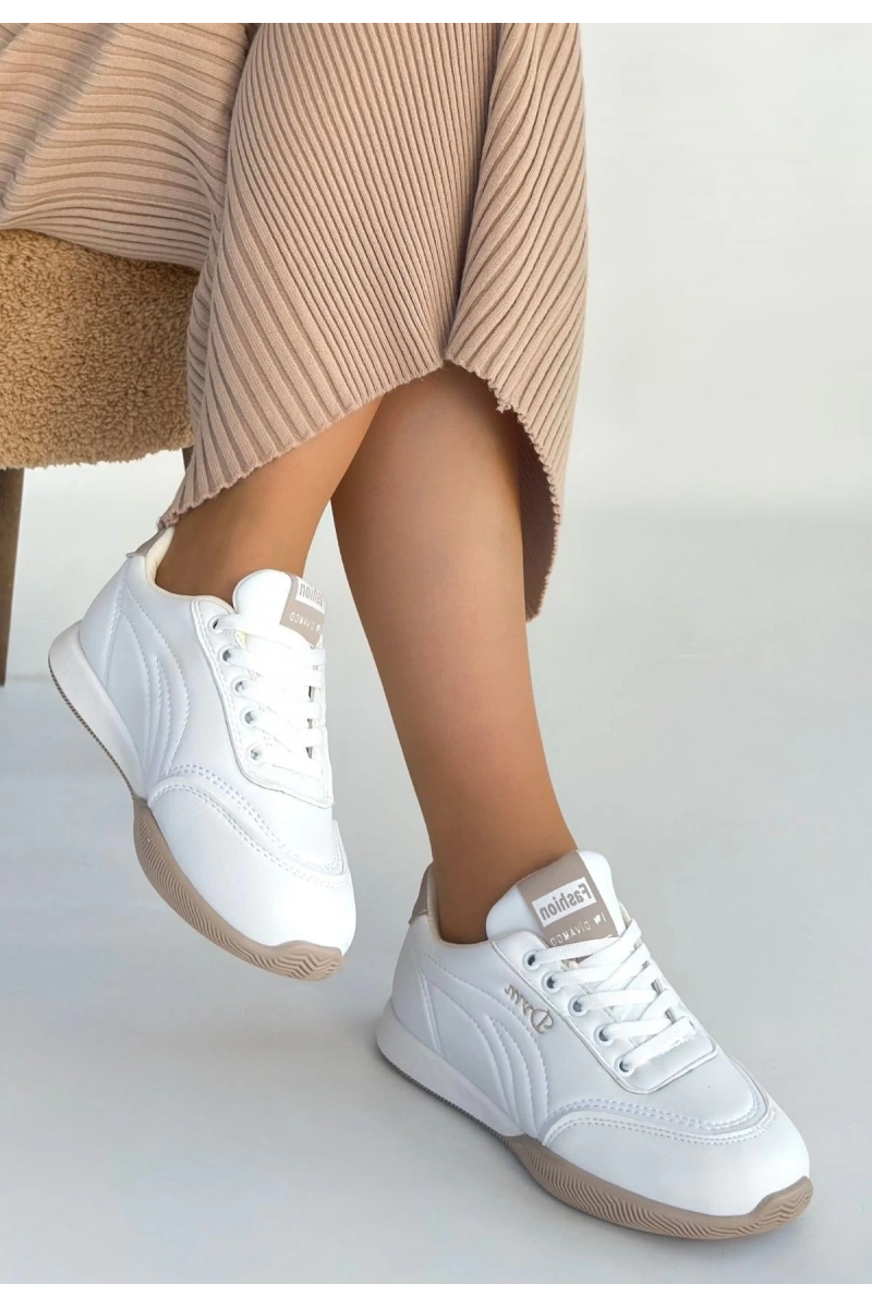 Tawen Beyaz Cilt Bağcıklı Spor Ayakkabı
