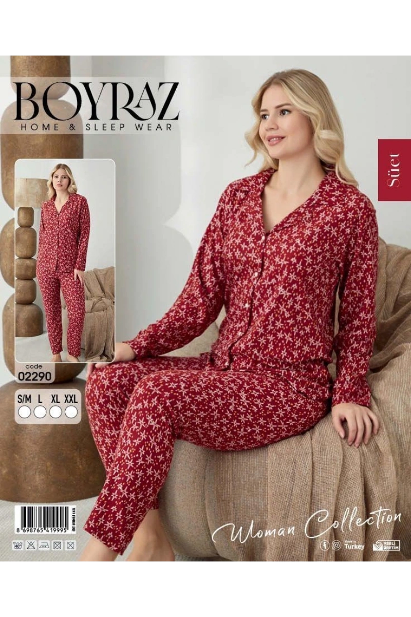 Boyraz 02290 Kadın Süet Uzun Kol Pijama Takımı
