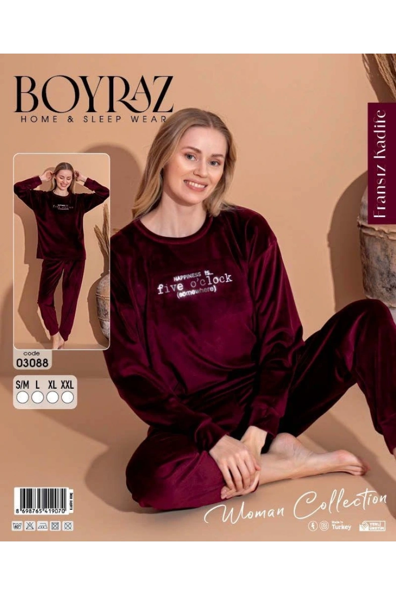 Boyraz 03088 Fransız Kadife Kumaş Uzun Kol Pijama Takımı
