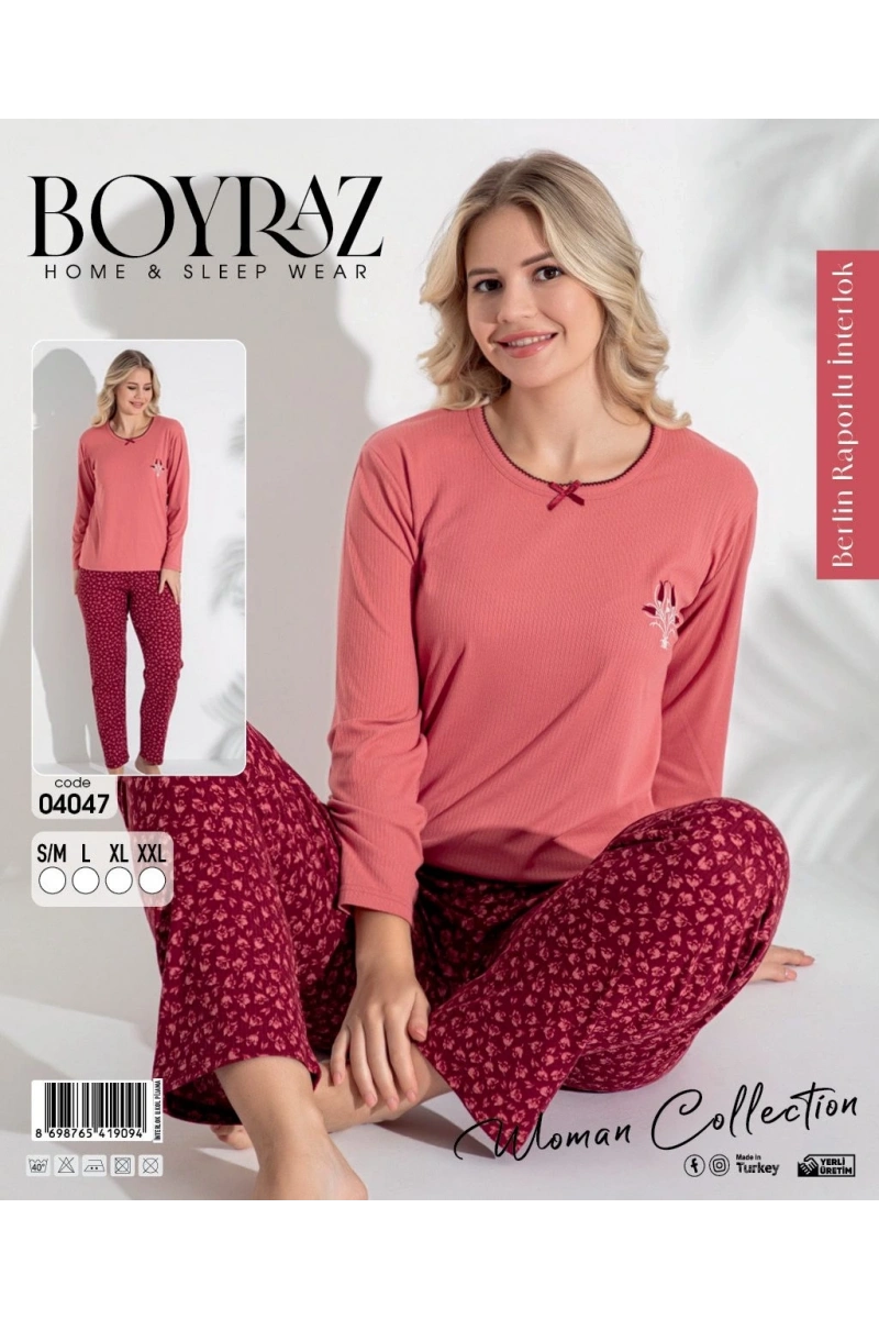 Boyraz 04047 Kadın Raporlu Uzun Kol Pijama Takımı