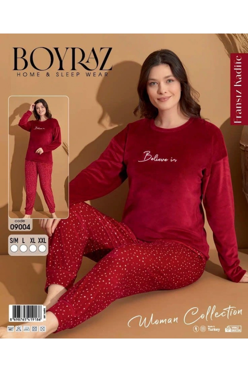 Boyraz 09004 Fransız Kadife Kumaş Uzun Kol Pijama Takımı