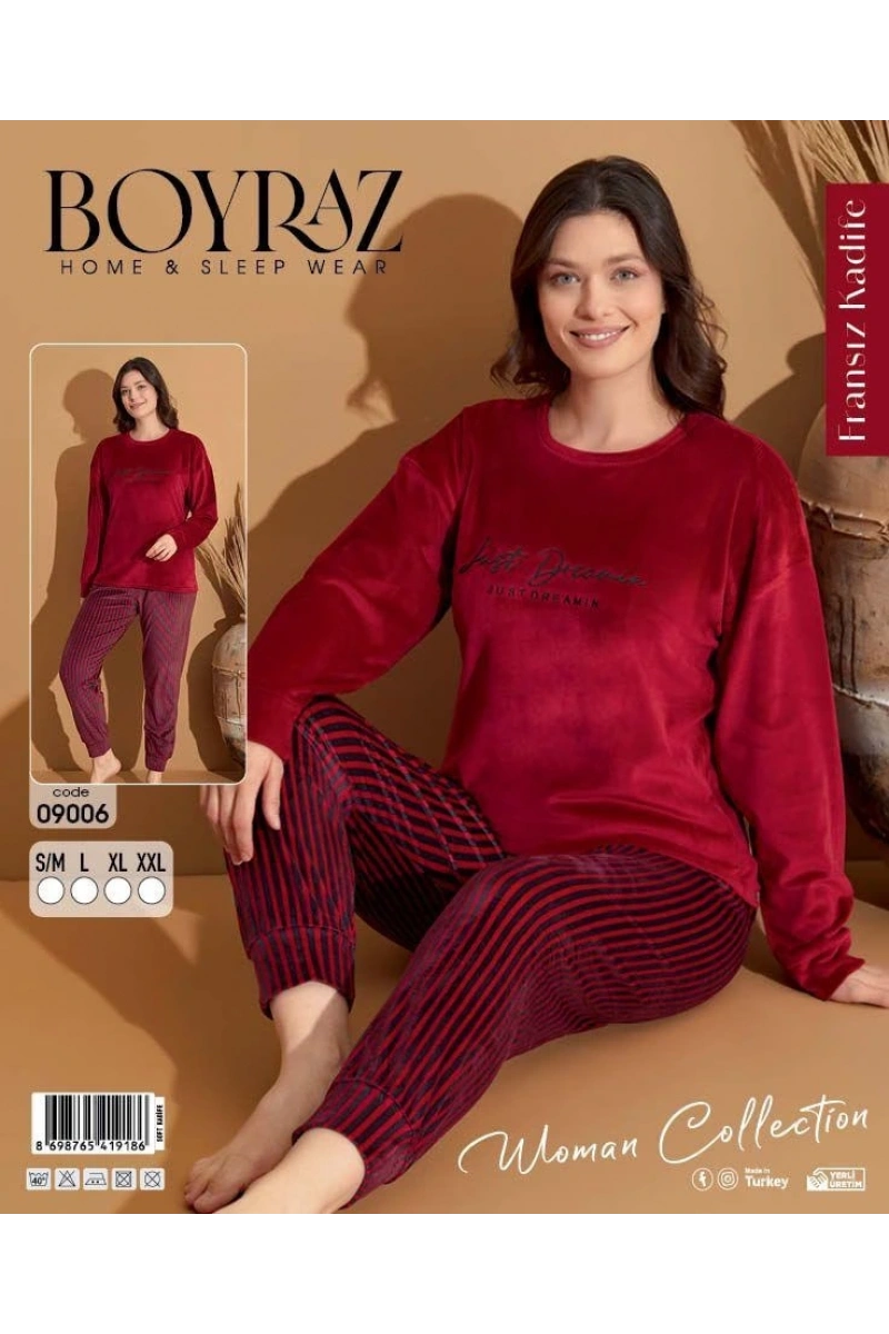 Boyraz 09006 Fransız Kadife Kumaş Uzun Kol Pijama Takımı