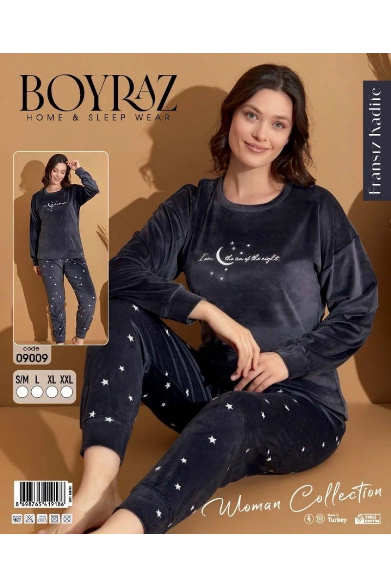 Boyraz 09009 Fransız Kadife Kumaş Uzun Kol Pijama Takımı