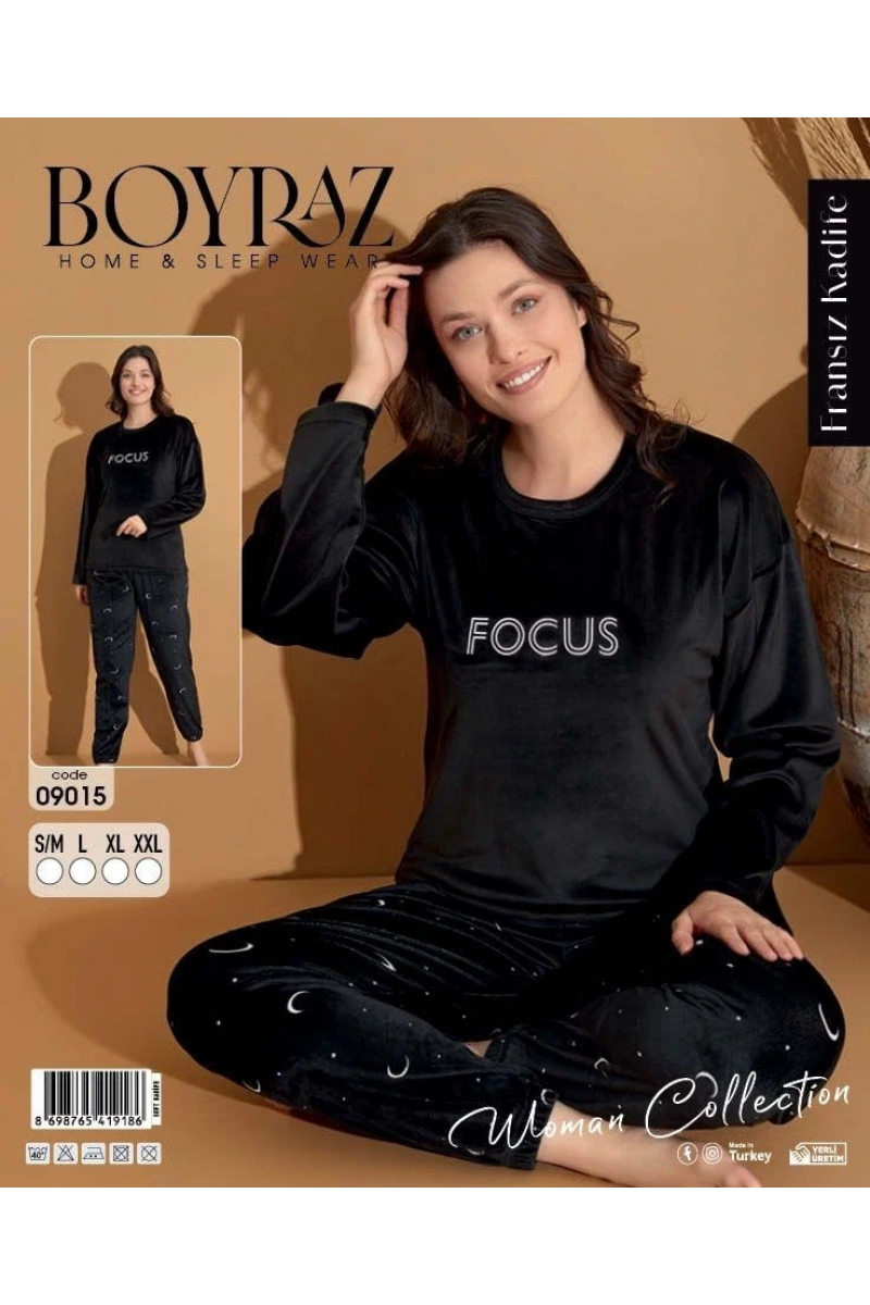 Boyraz 09015 Fransız Kadife Kumaş Uzun Kol Pijama Takımı