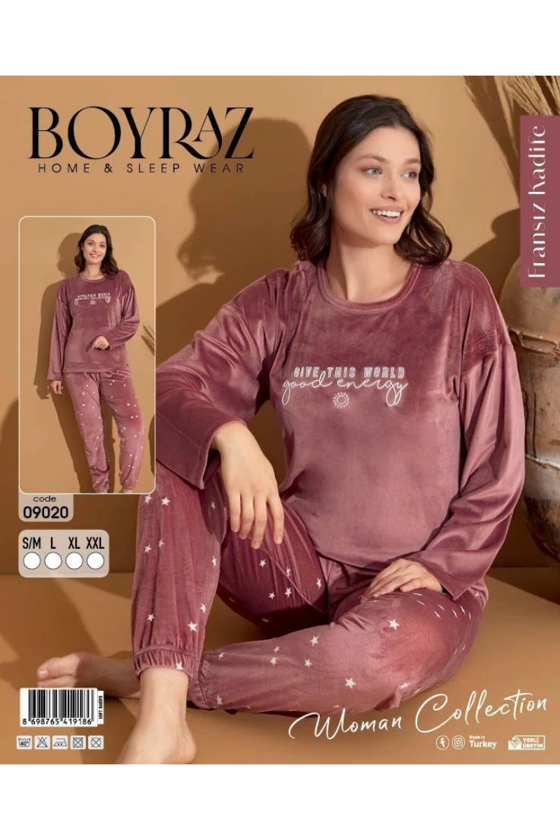 Boyraz 09020 Fransız Kadife Kumaş Uzun Kol Pijama Takımı