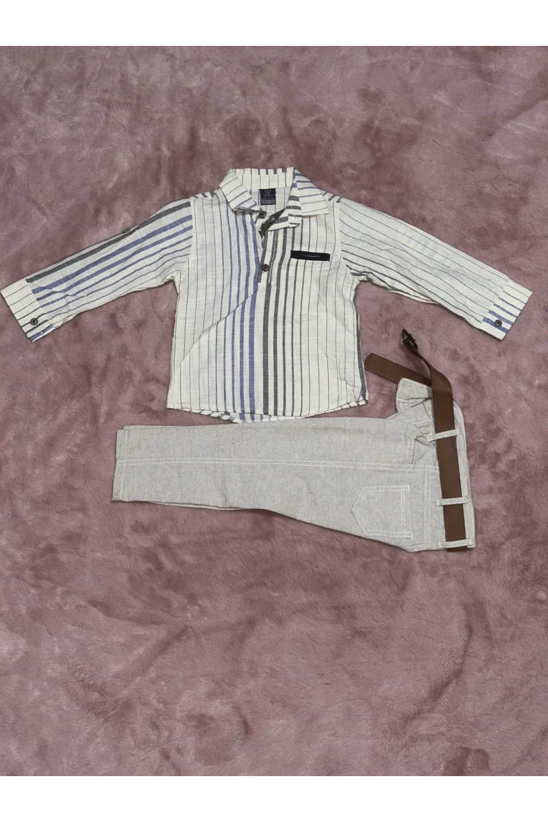 1-6 yaş gömlek pantolon kemerli erkek çocuk alt üst takım keten bej