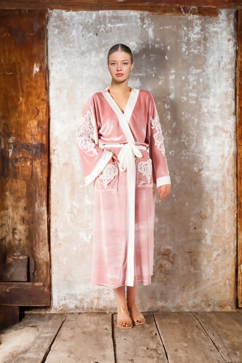 Aqua 26309 Kadın Kadife İşlemeli Uzun Sabahlık