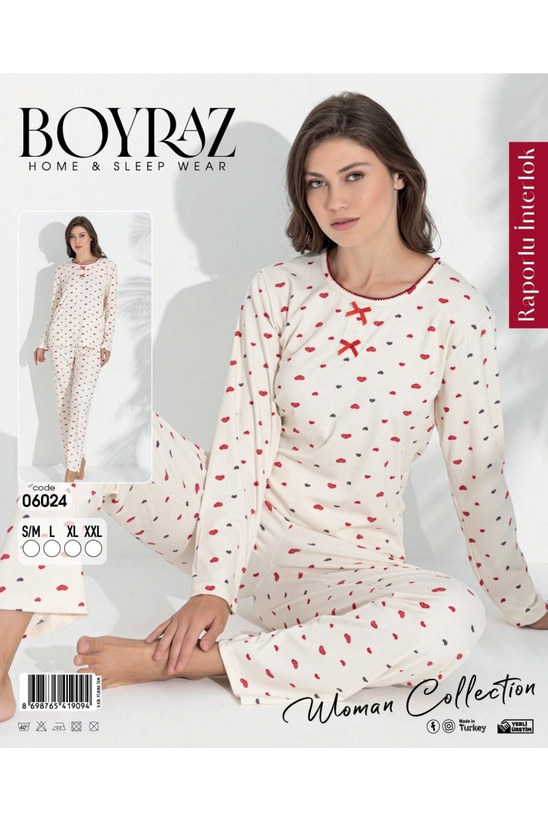 Boyraz 06024 Kadın Uzun Kol Kalpli Pijama Takımı