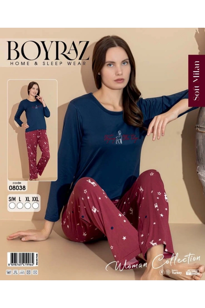 Boyraz 08038 Soft Milan Kumaş Uzun Kol Pijama Takımı