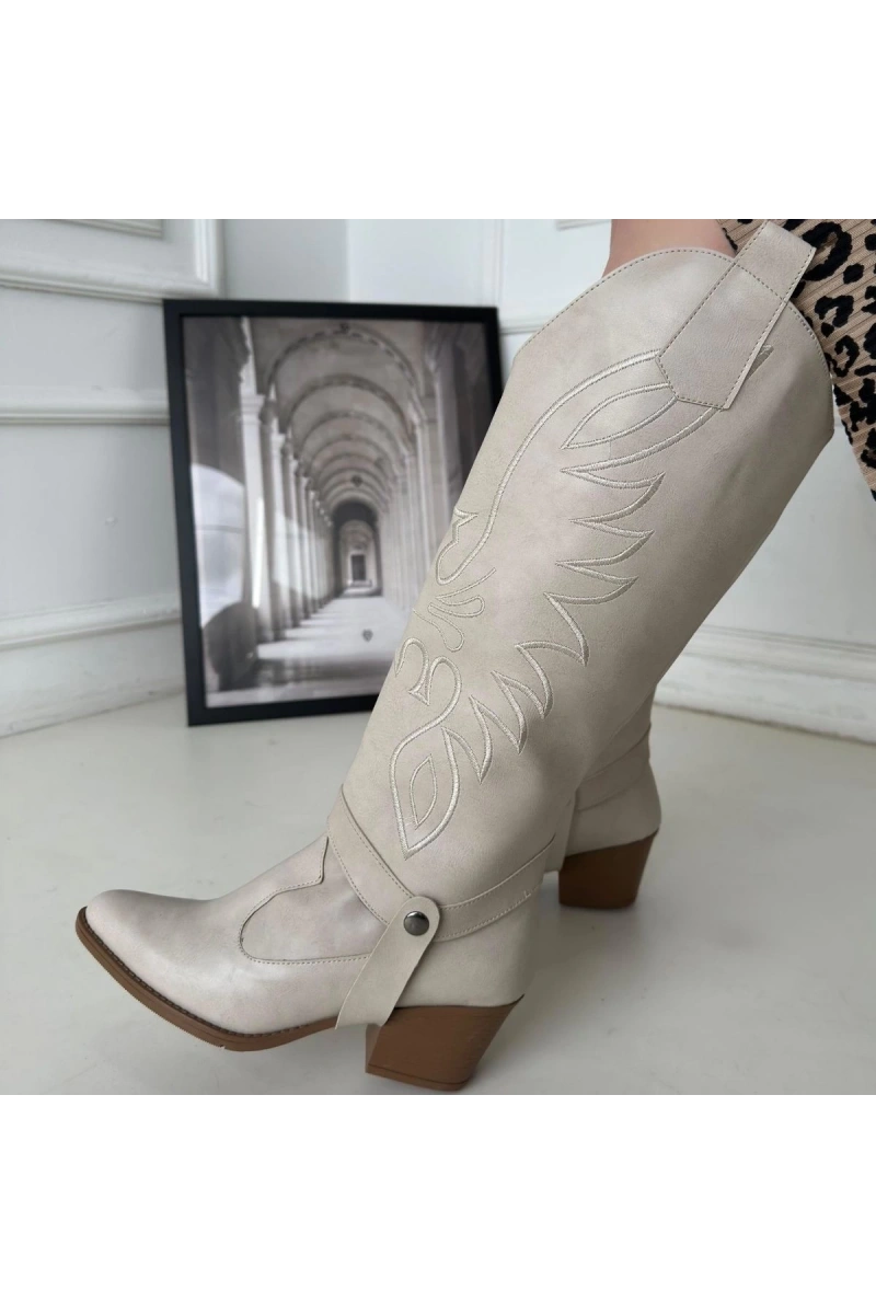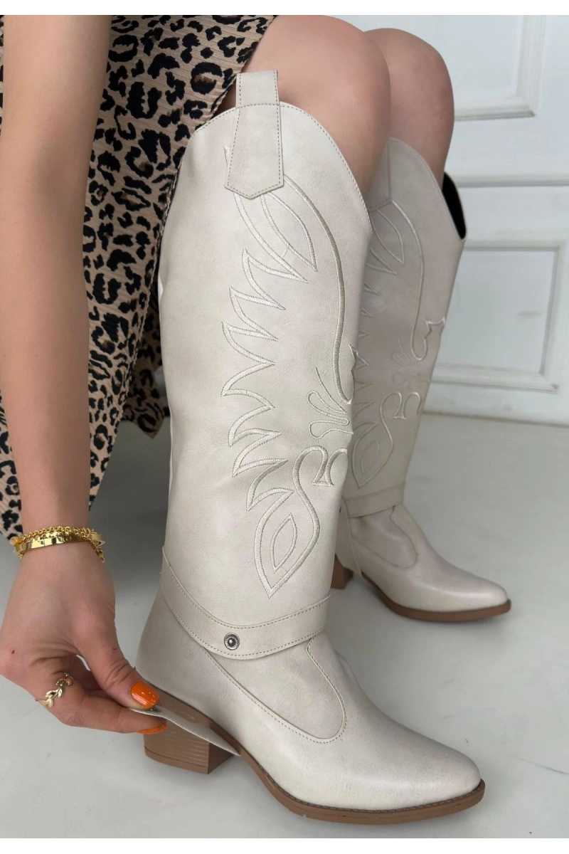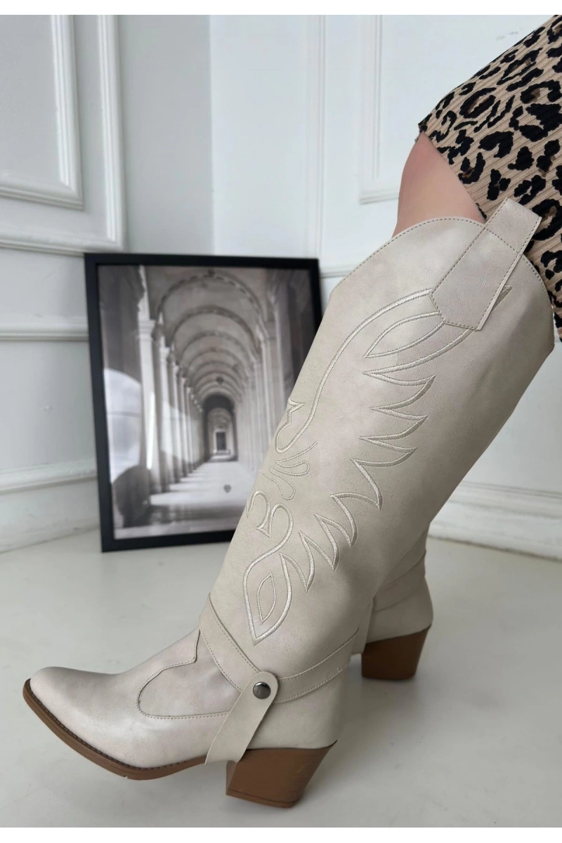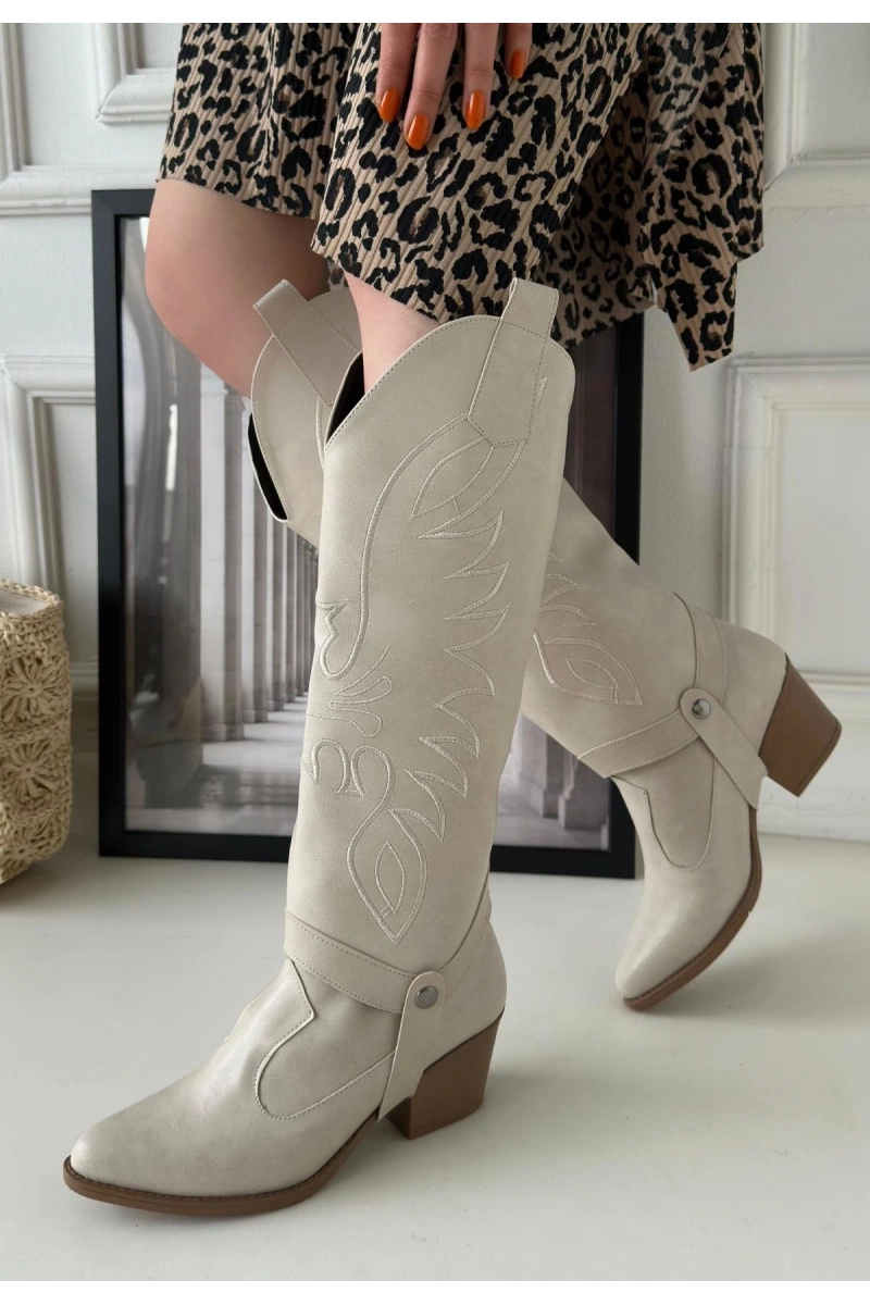 Jilla Bej Cilt Tak Çıkar Topuklu Bot Ve Çizme