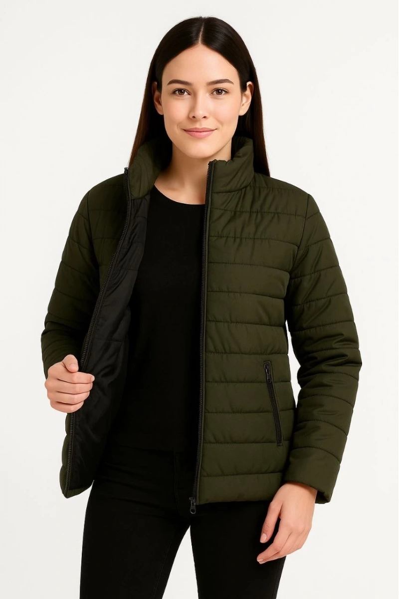 Kadın Bomber Mont Ceket – Su İtici Kumaş, Kapitone Astarlı, Fermuarlı, Kışlık - Haki