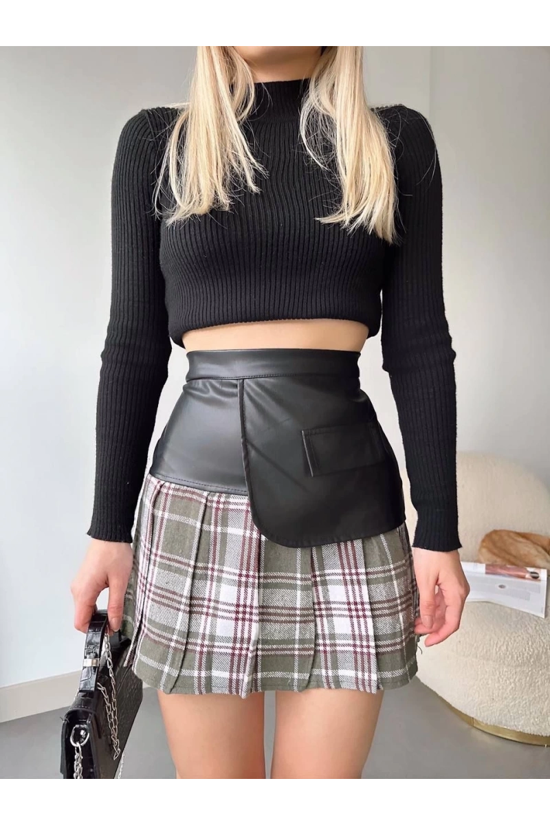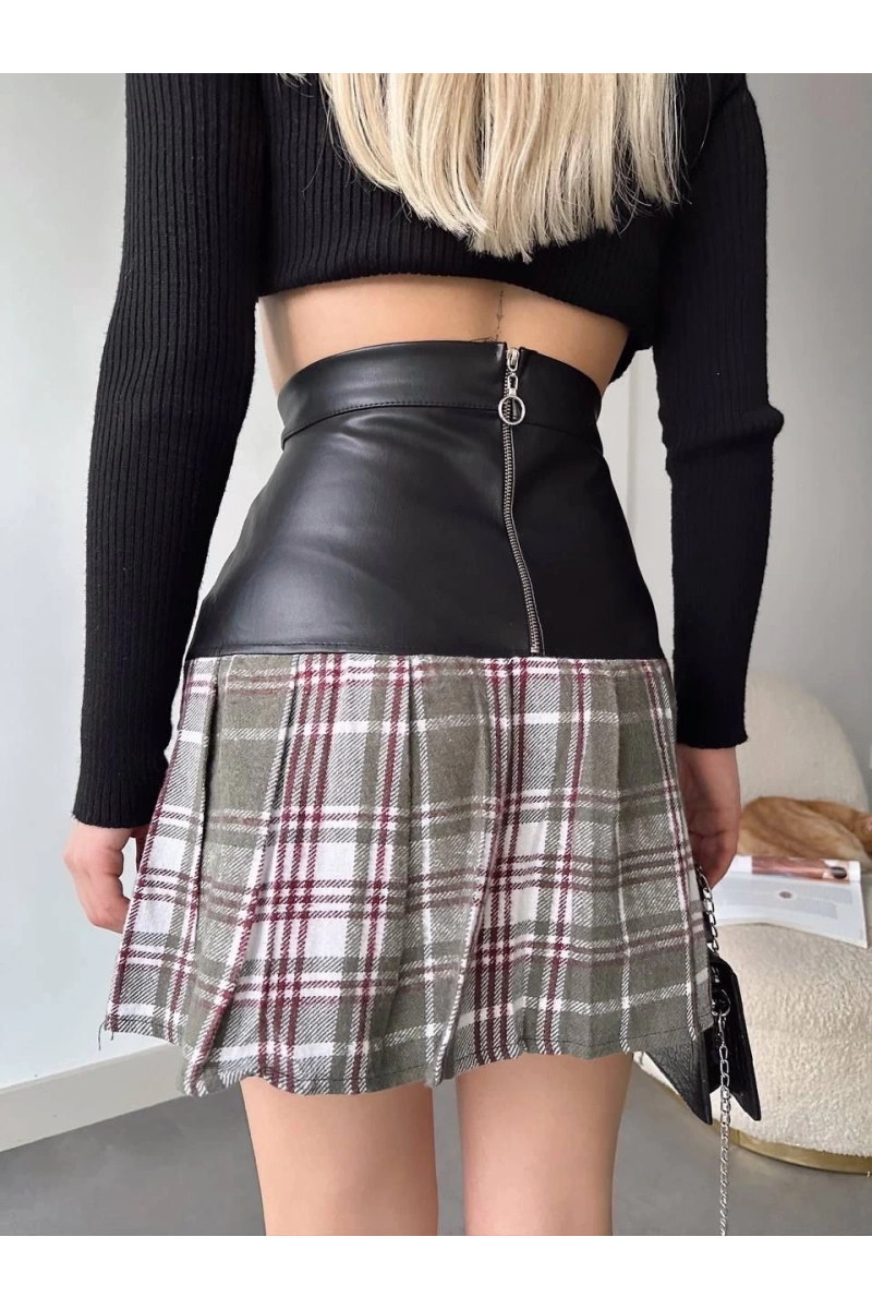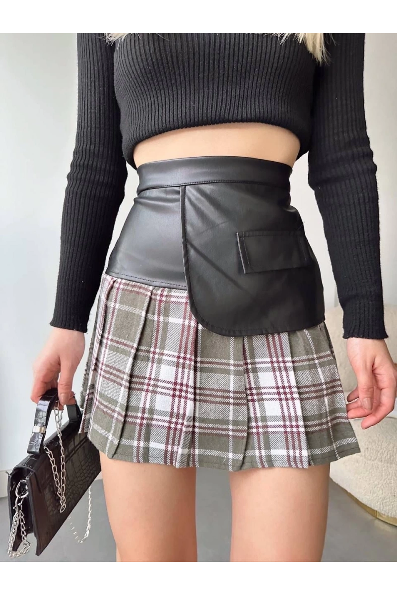 Deri garnili cepli ekose etek, gardırobunuzun vazgeçilmez parçası olmaya aday!