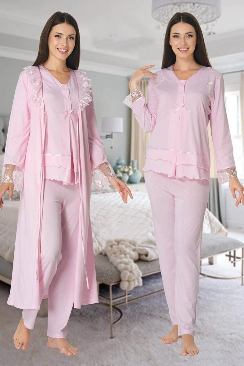 Effortt 2424 Uzun Dantel Sabahlıklı Lohusa Pijama