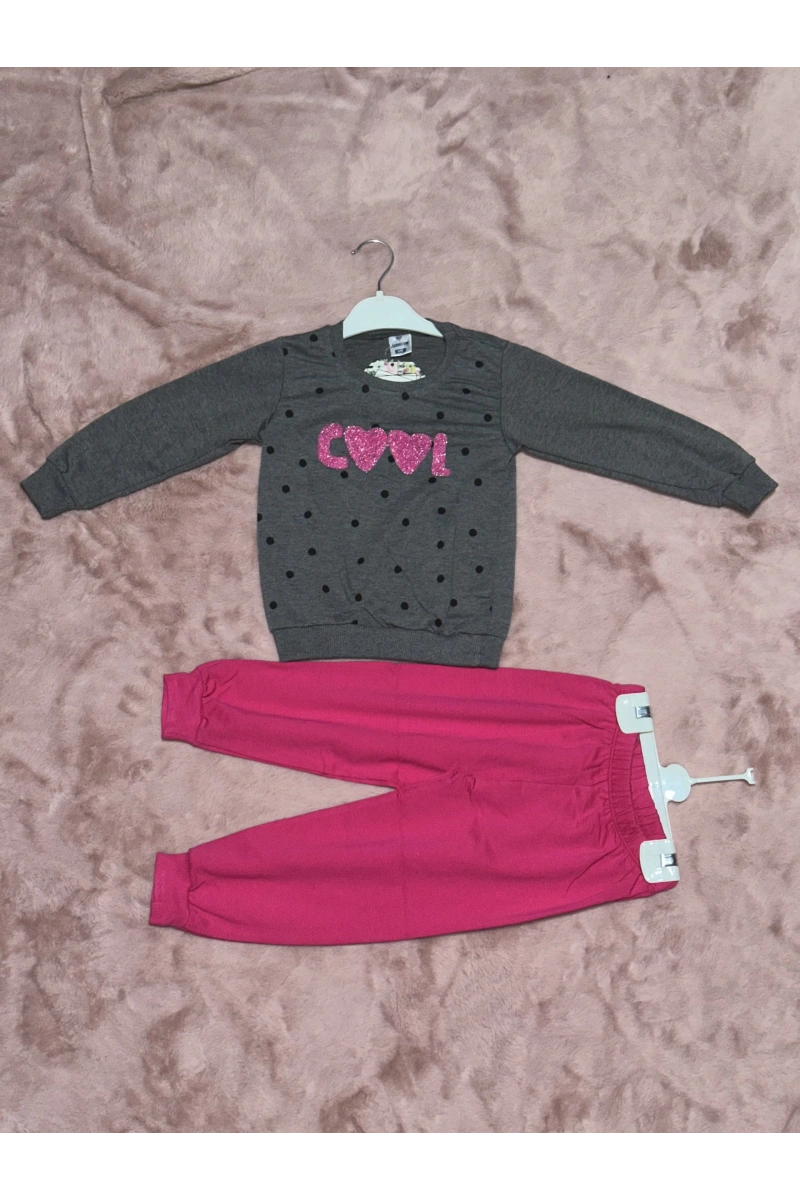 3-7 yaş pontiyeli ikili alt üst takım gri fuşya kız çocuk