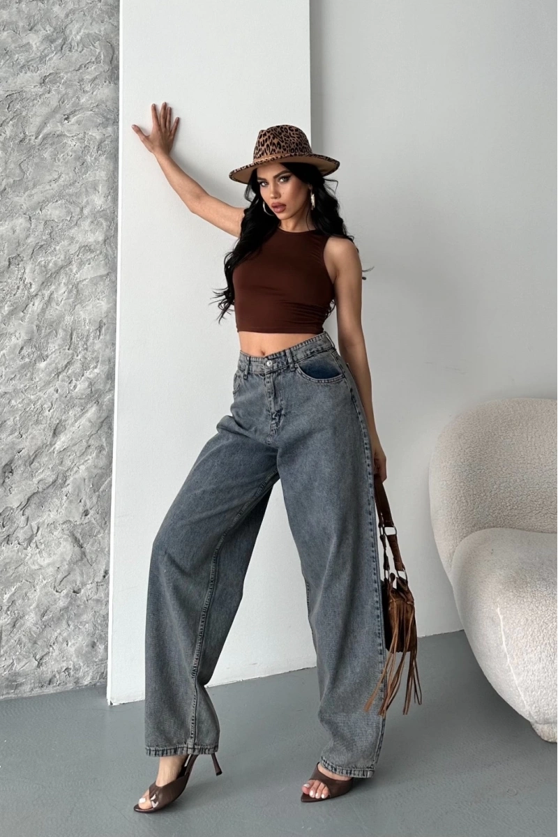 Baggy kar yıkama eskitme kahve jeans pantolon d2007 ile tarzınızı tamamlayarak şıklığı yakalayabilirsiniz.