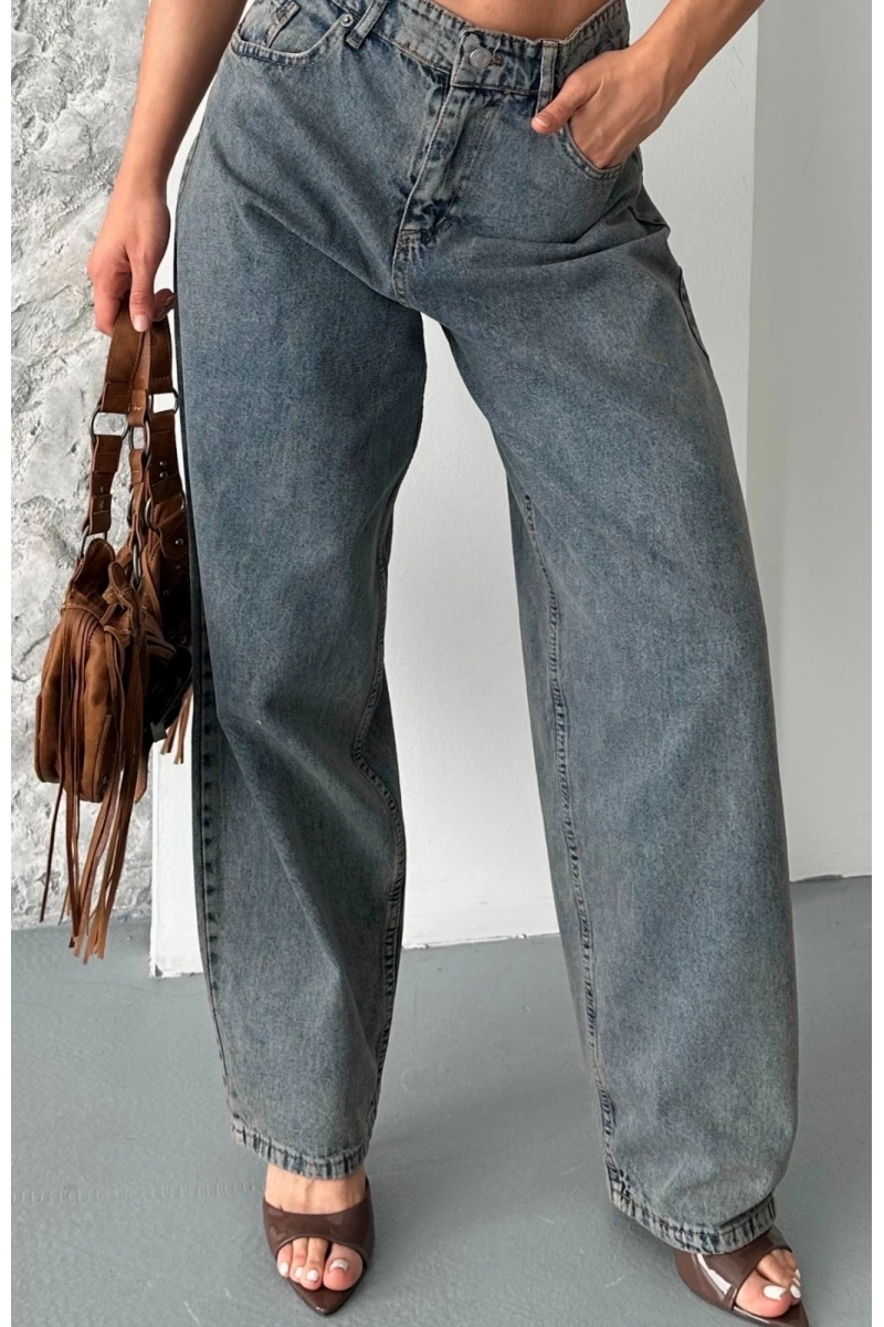 Baggy kar yıkama eskitme kahve jeans pantolon d2007, rahat ve şık bir görünüm sunar.