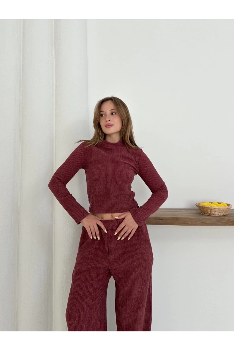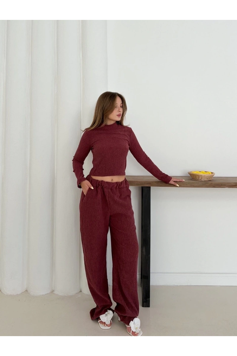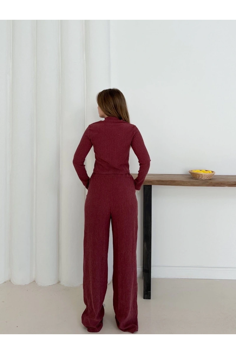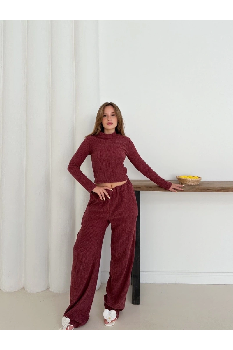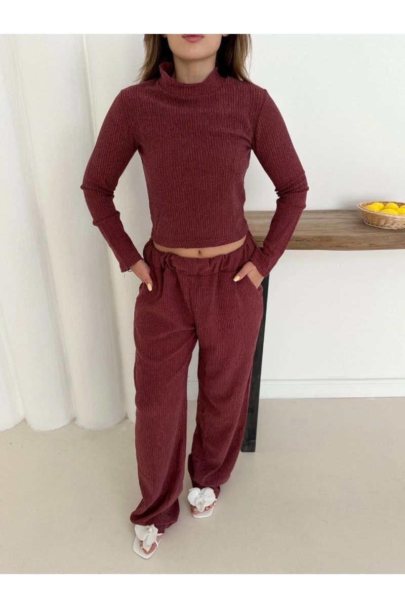 Balıkçı yaka örme takım bordo st265865, zarif ve şık bir görünüm sunar.