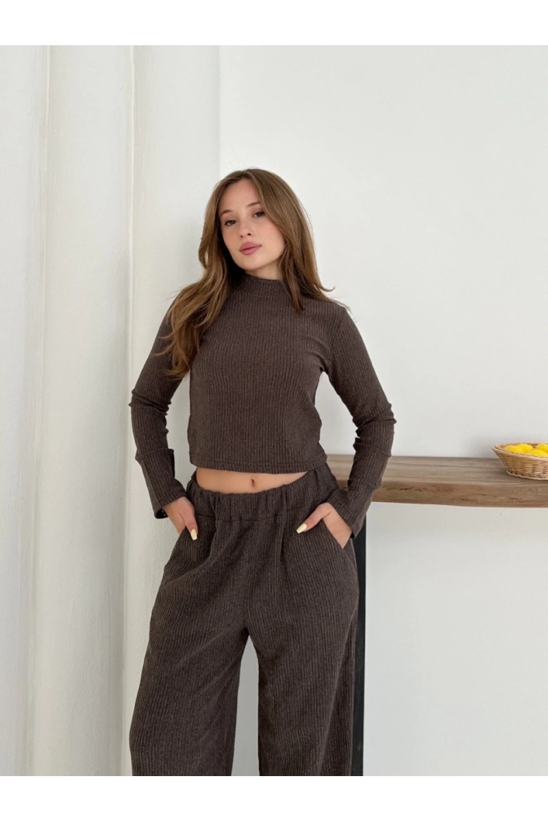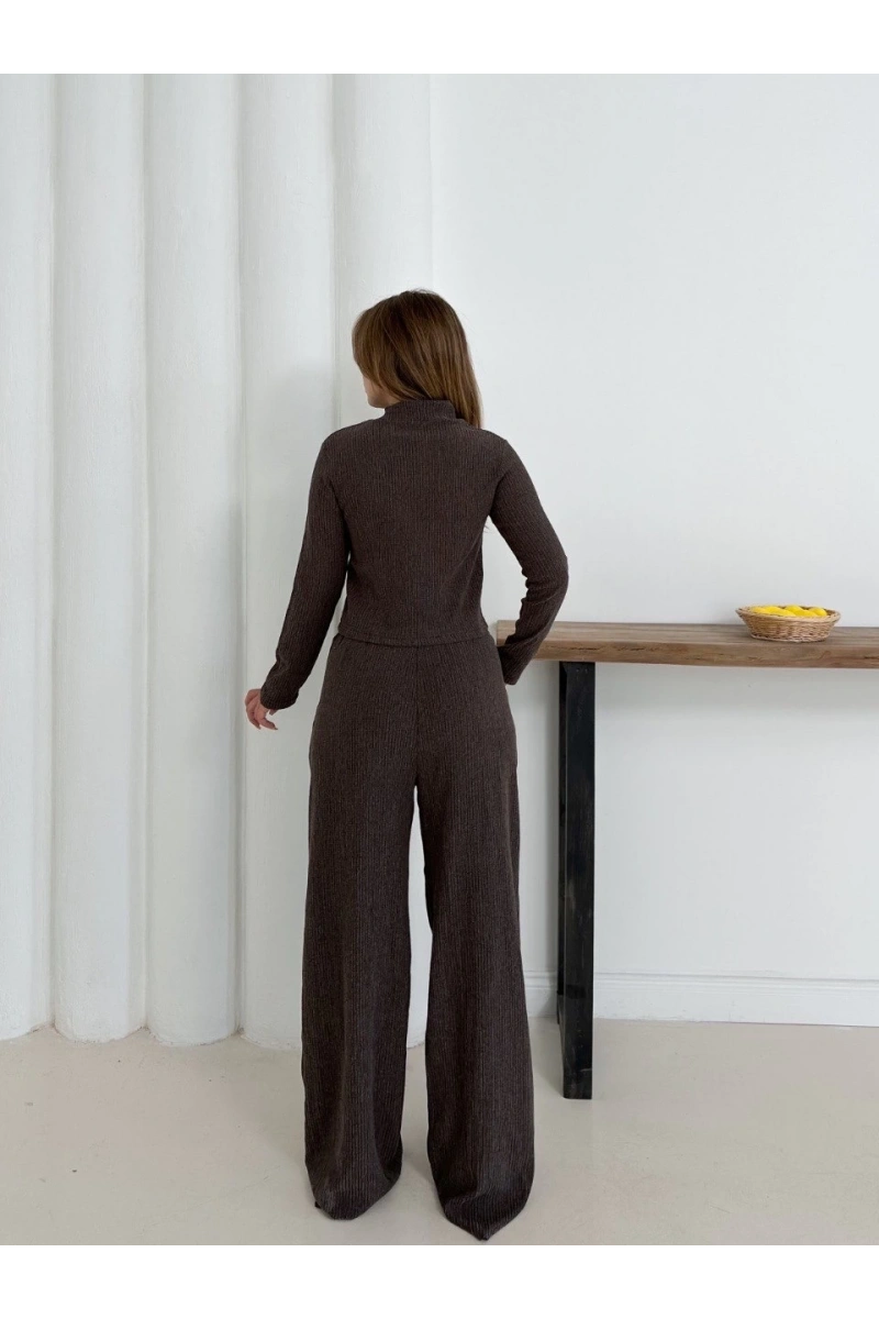 Balıkçı yaka örme takım kahve st265865