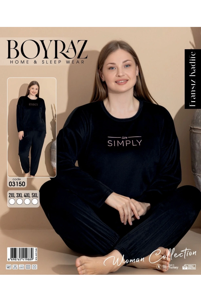 Boyraz 03150 Fransız Kadife Kumaş Uzun Kol Pijama Takımı