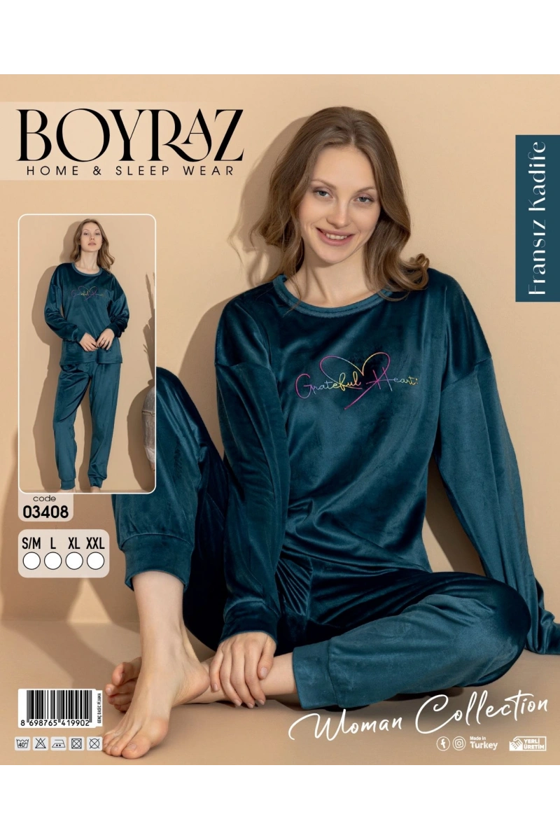 Boyraz 03408 Fransız Kadife Kumaş Uzun Kol Pijama Takımı