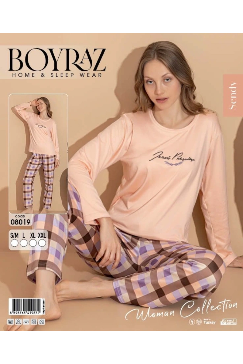 Boyraz 08019 Kadın Sendy Kumaş Uzun Kol Pijama Takımı