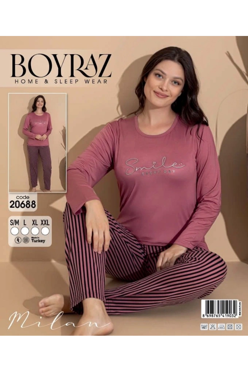 Boyraz 20688 Kadın Milan Uzun Kol Pijama Takımı