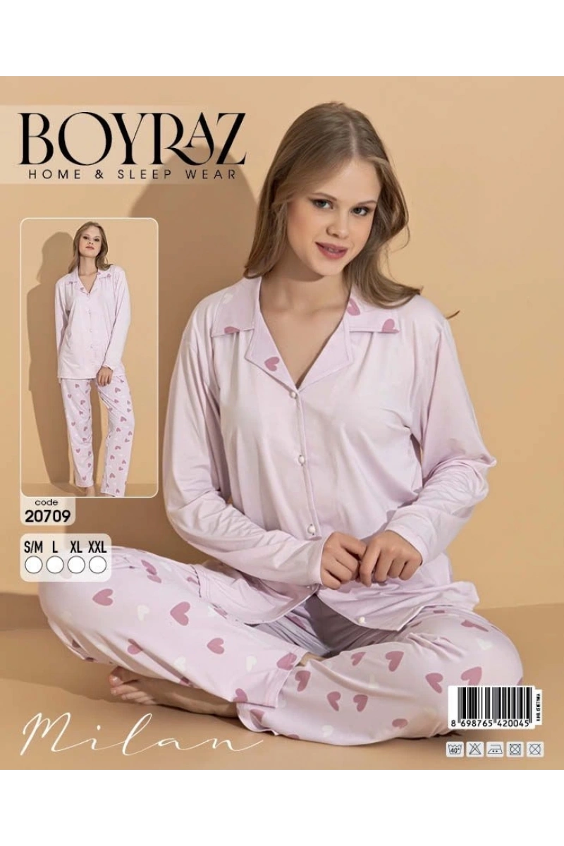 Boyraz 20709 Milan Gömlek Yaka Uzun Kol Pijama Takımı