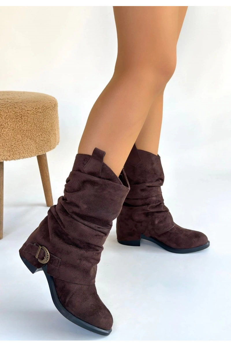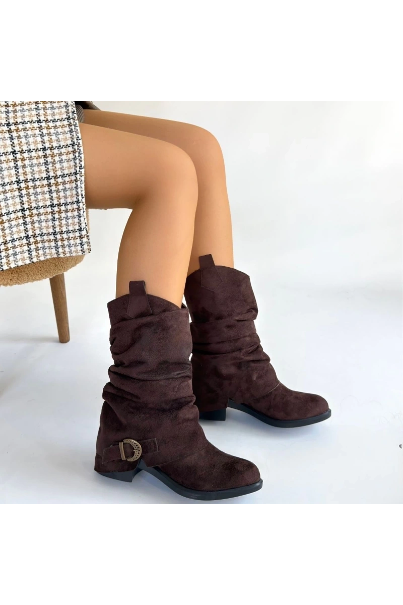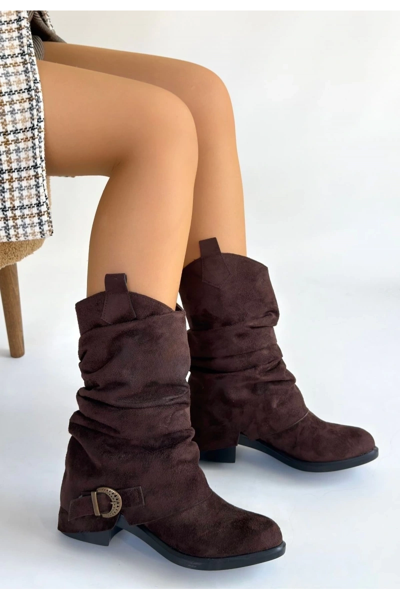 Canty Kahverengi Süet Körüklü Topuklu Çizme