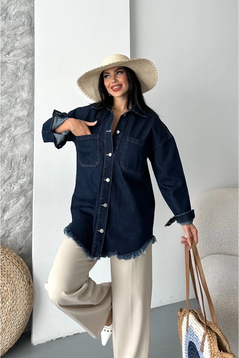 Cepli püsküllü kar yıkama kot ceket koyu mavi D2515, şıklığı ve rahatlığı bir arada sunar. Hem günlük hayatta hem de özel günlerde tercih edebileceğiniz bu ceket, gardırobunuzun vazgeçilmezi olmaya aday.