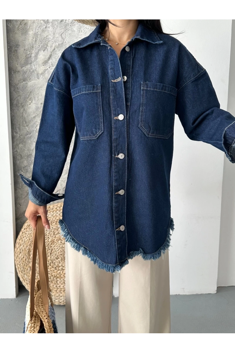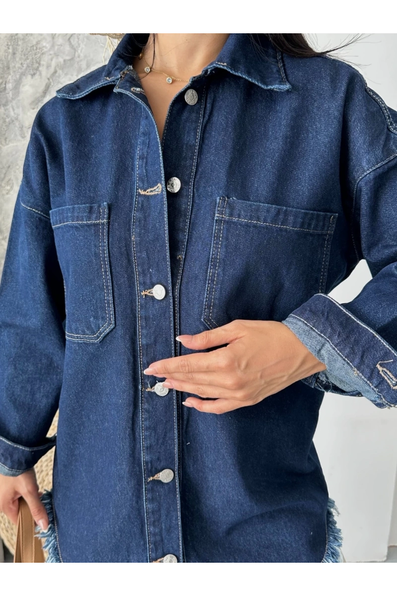 Bu şık ceketi günlük giyimde jean pantolonlarınızla, eteklerinizle veya elbiselerinizle kombinleyerek farklı tarzlar yaratabilirsiniz. Farklı beden seçenekleri ile sunulan cepli püsküllü kar yıkama kot ceket koyu mavi D2515, tarzınızı tamamlamanızı sağlayacak!