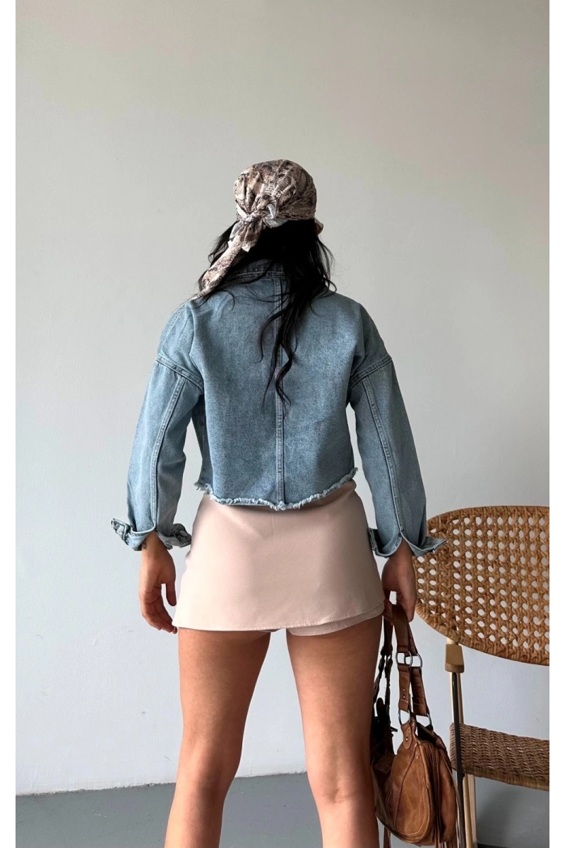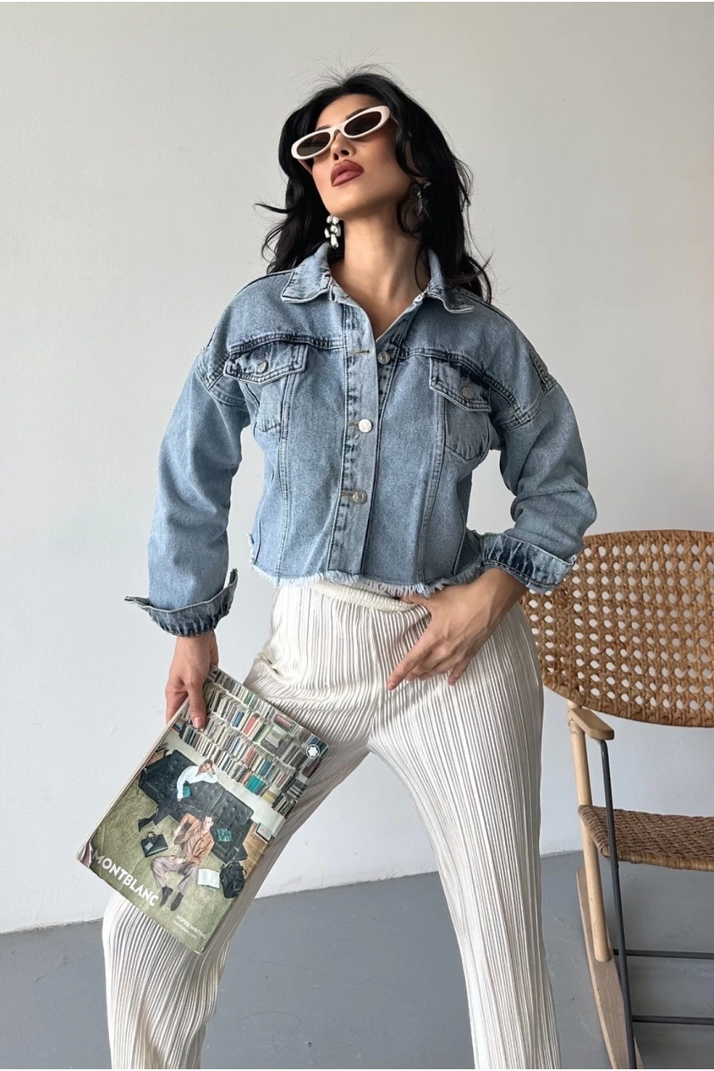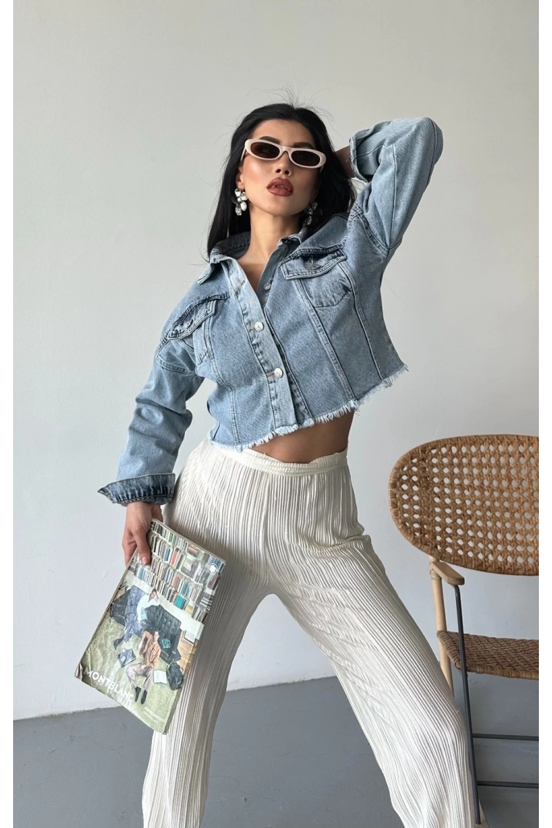 Ürün Adı: Çift kapaklı püsküllü crop buz mavi d2002