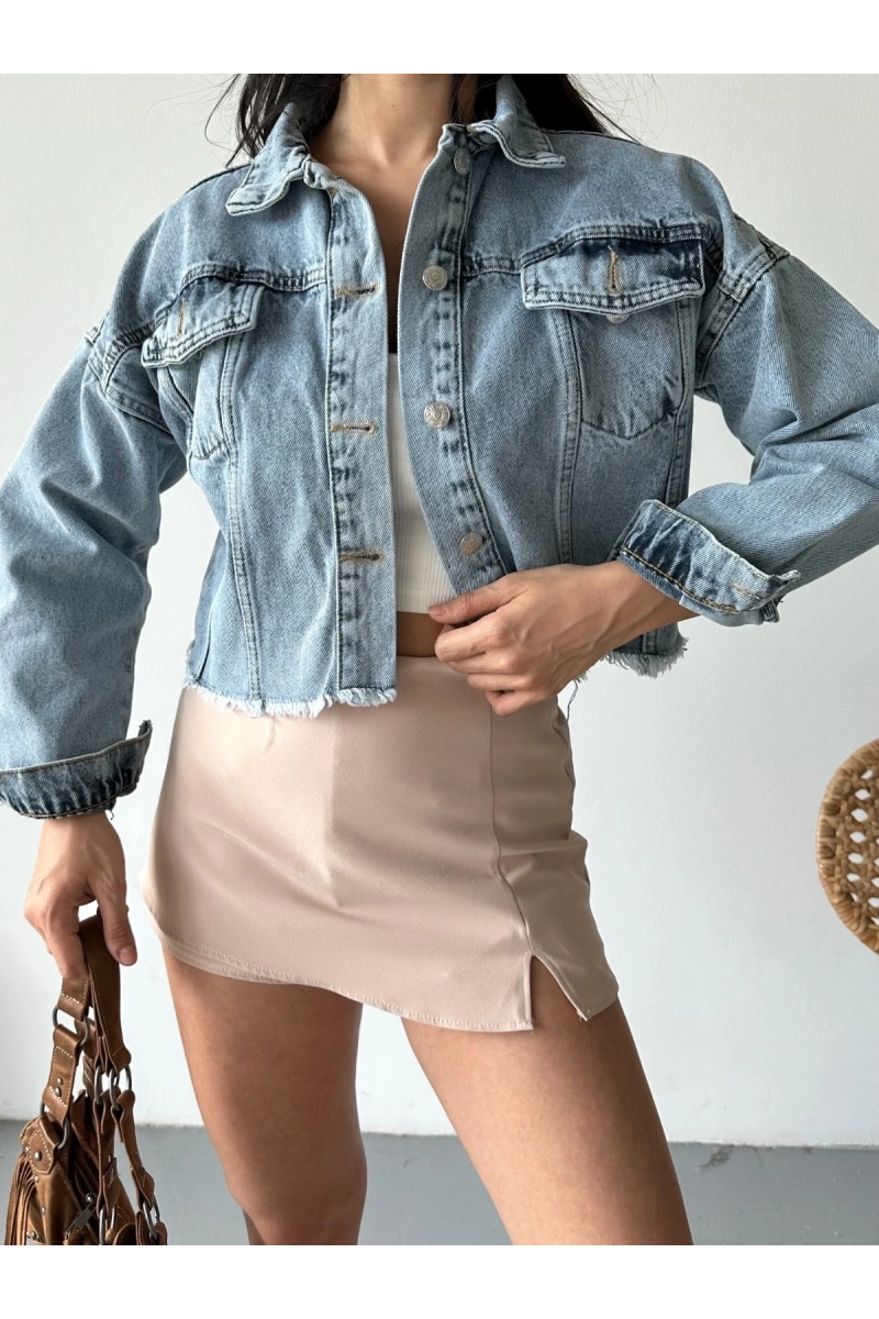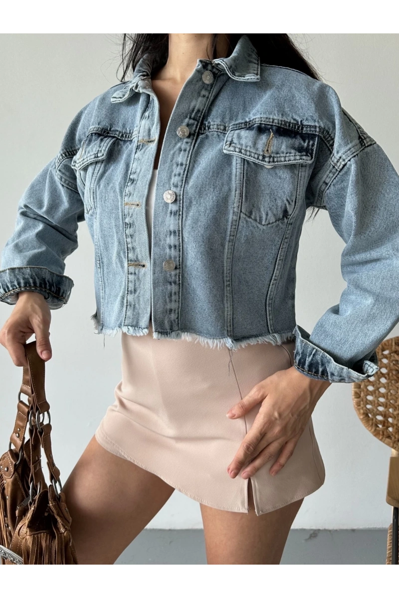 • Şık tasarımıyla öne çıkan crop kesimli bir ceket.