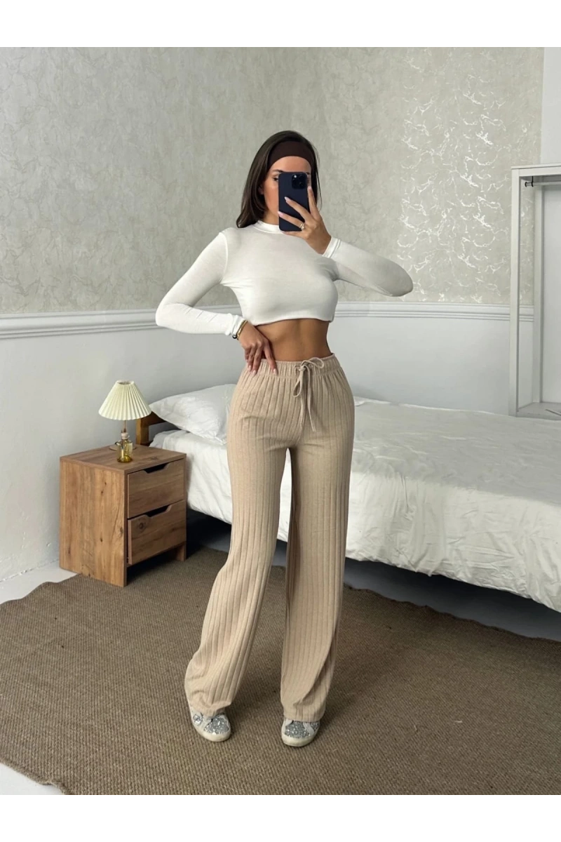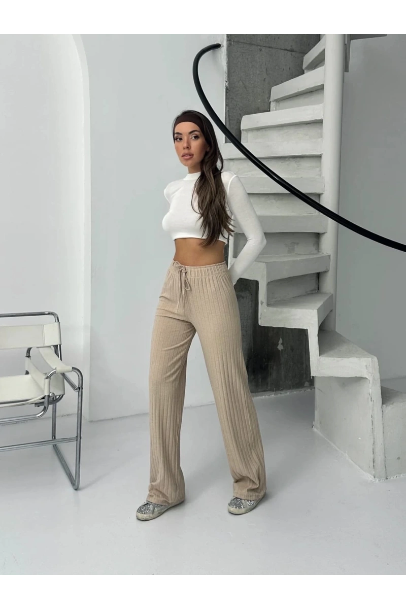 FITILLI ŞARDONLU PANTOLON BEJ A4058, şıklığı ve rahatlığı bir arada sunar.