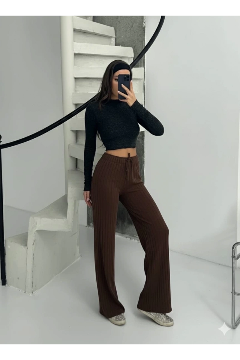 Fitilli şardonlu pantolon kahve a4058