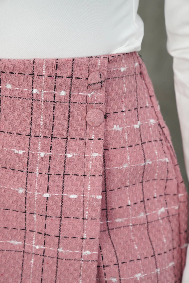 İki düğmeli şort etek pembe h26414, şıklığı ve rahatlığı bir arada sunuyor. Hem şortun rahatlığı hem de eteğin şıklığı ile kombinlerinizi tamamlayabilirsiniz.