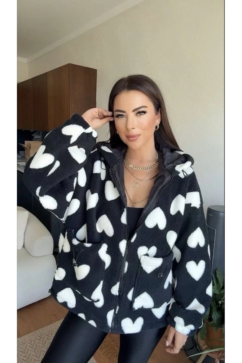 Şık ve zarif bir görünüm elde etmek isteyen kadınlar için ideal bir seçenek olan Kalpli Peluş Ceket, gardırobunuzu şenlendirecek harika bir parça!