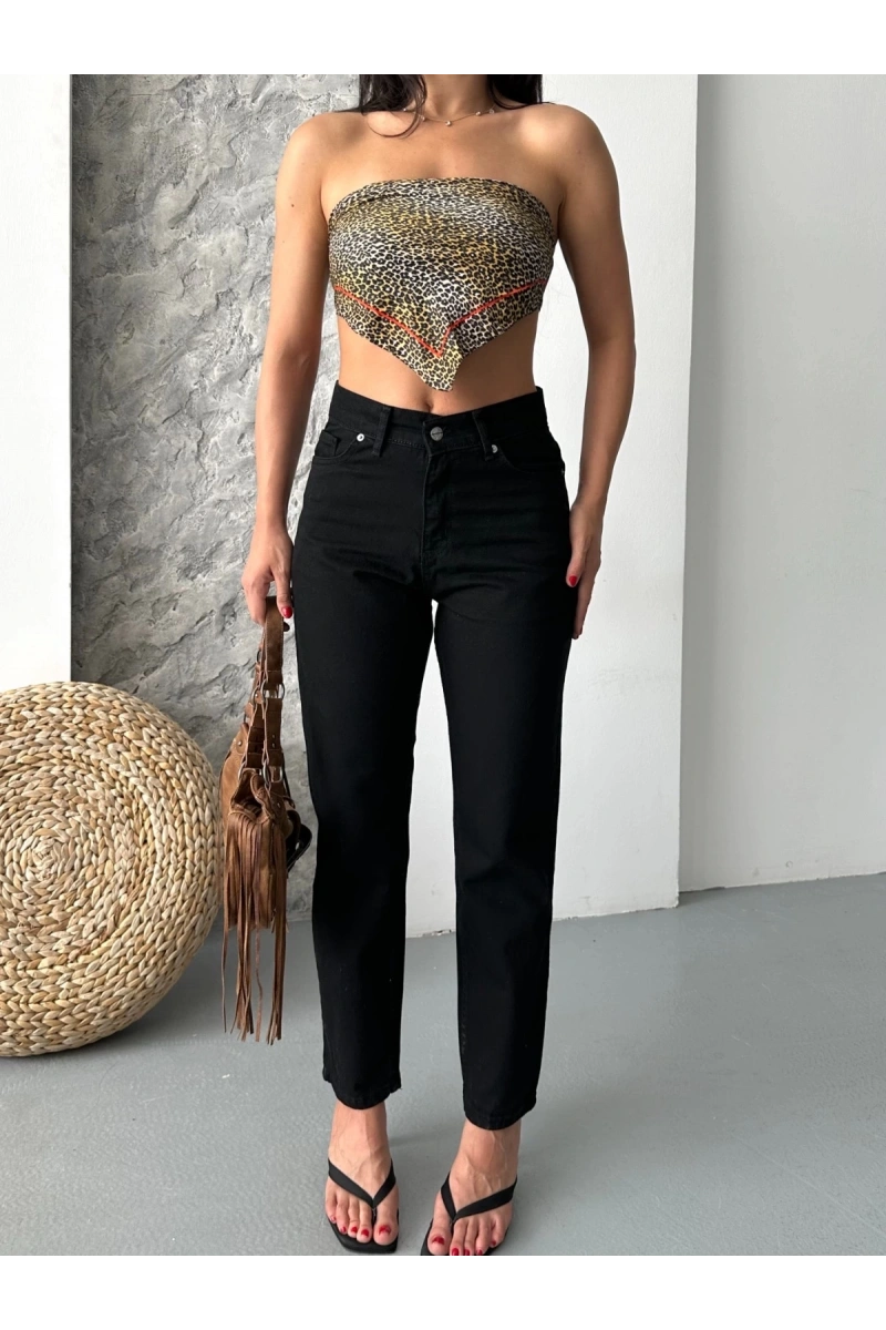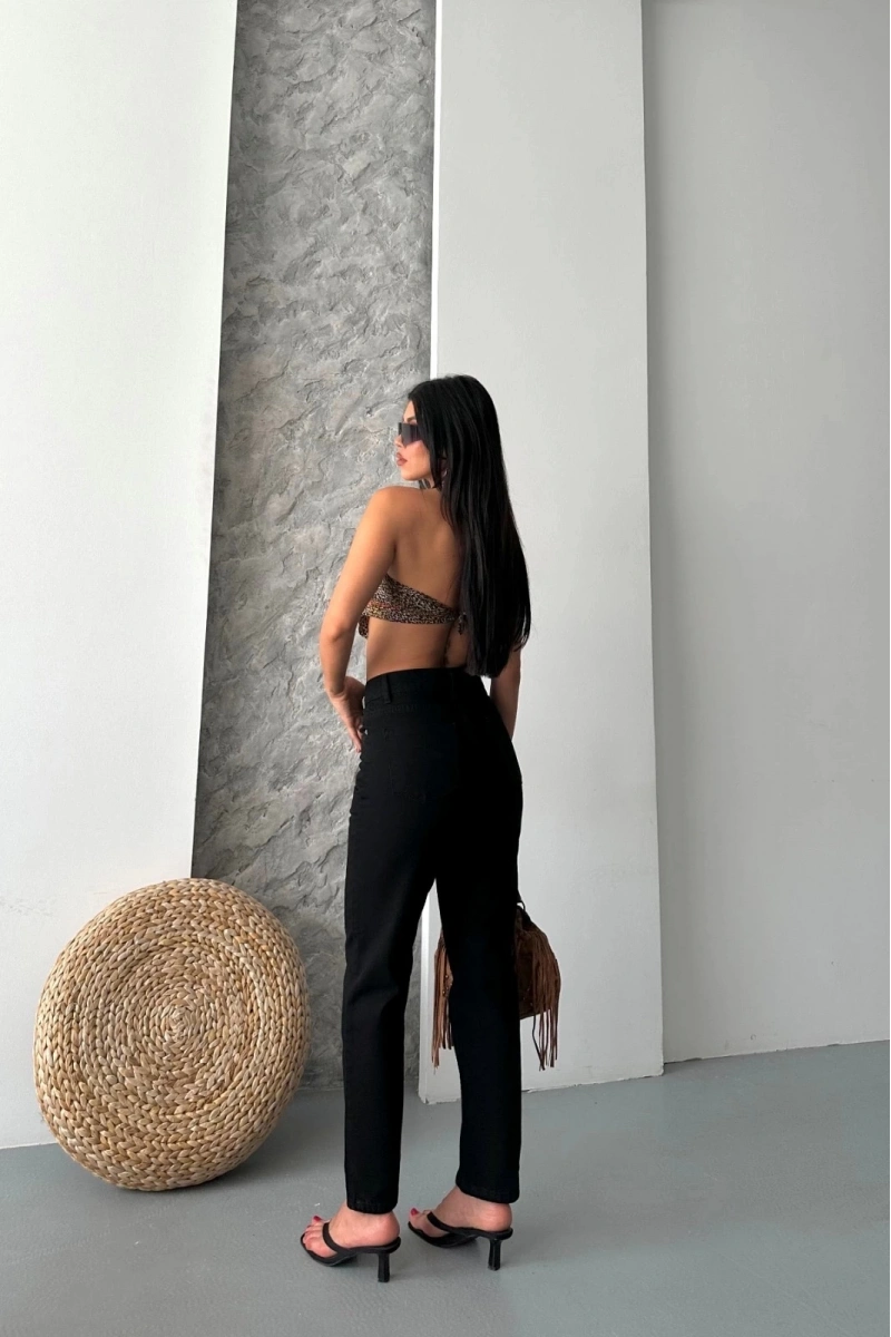 Yüksek bel tasarımı ve geniş paça detayıyla şıklığı ve rahatlığı bir arada sunan Mom Fit Enzim Taş Yıkama Jeans Pantolon Siyah D2006, gardırobunuzun vazgeçilmezi olmaya aday.