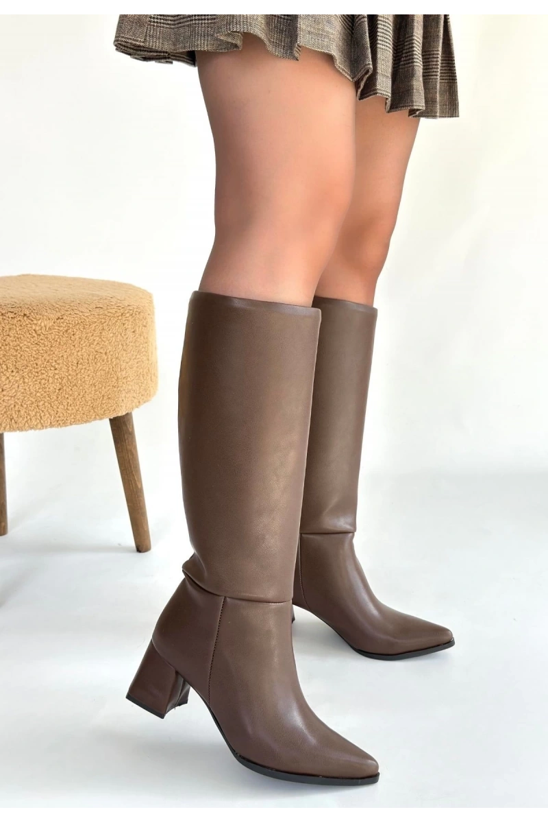 Roksa Acı Kahvei Cilt Topuklu Çizme