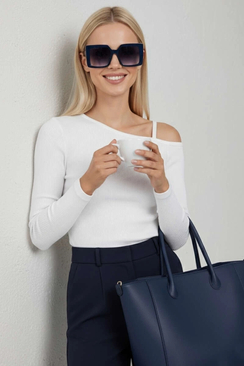 Beyaz rengiyle her mevsim ve her ortamda tercih edebileceğiniz Tek Omuz İpli Bluz, şıklığınızı ön plana çıkaracak!