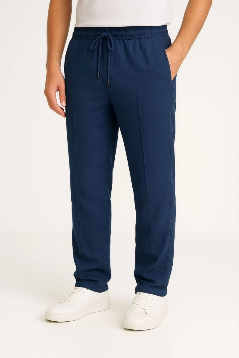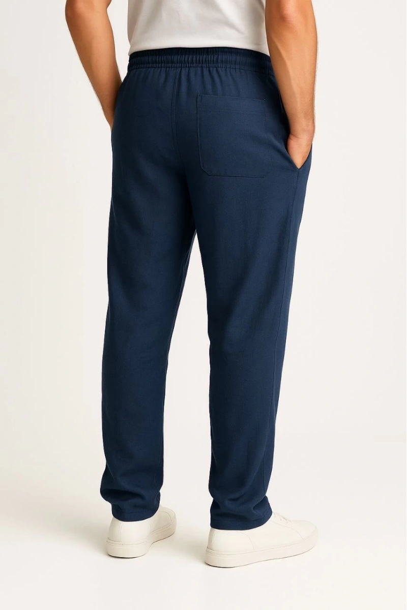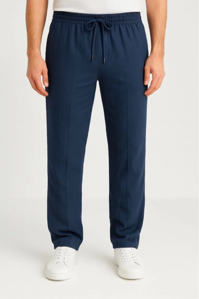 Erkek Keten Pantolon – Cepli, Beli Lastikli ve Bağcıklı, Nefes Alan Rahat Kalıp, Yazlık ve Baharlık Günlük Giyim, Şık & Konforlu Boru Paça Model - Lacivert